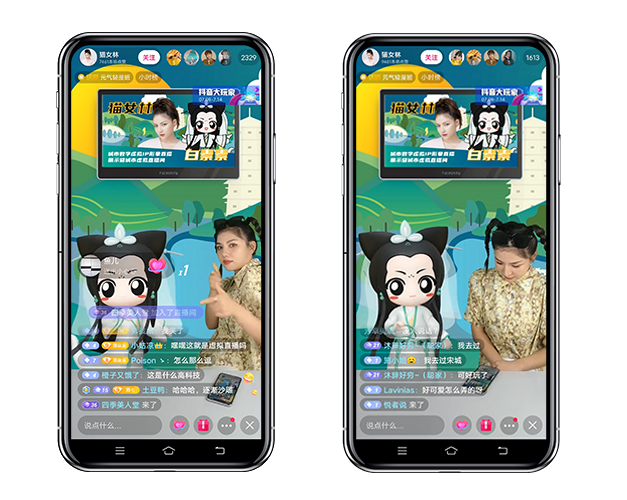 AR技术加上实时动作捕捉和面部捕捉技术被广泛应用在虚拟主播的直播场景中,通过一些硬件设备捕捉直播间背后真人的表情和动作,即时同步给虚拟形象,让虚拟形象作出相应的反应。