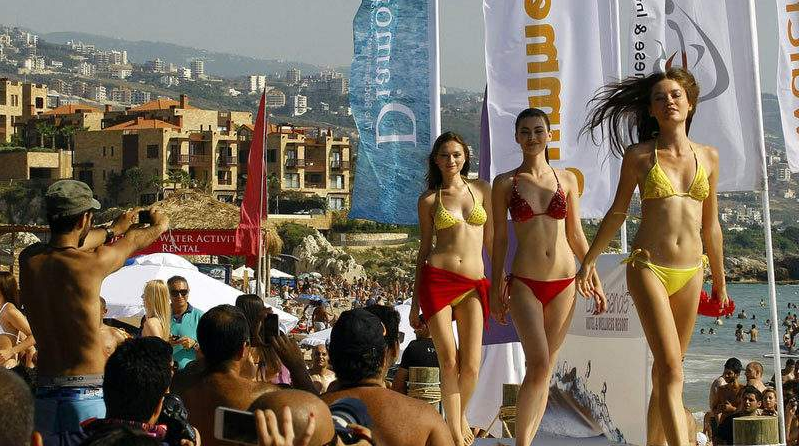 黎巴嫩海滩边举行性感内衣泳装秀