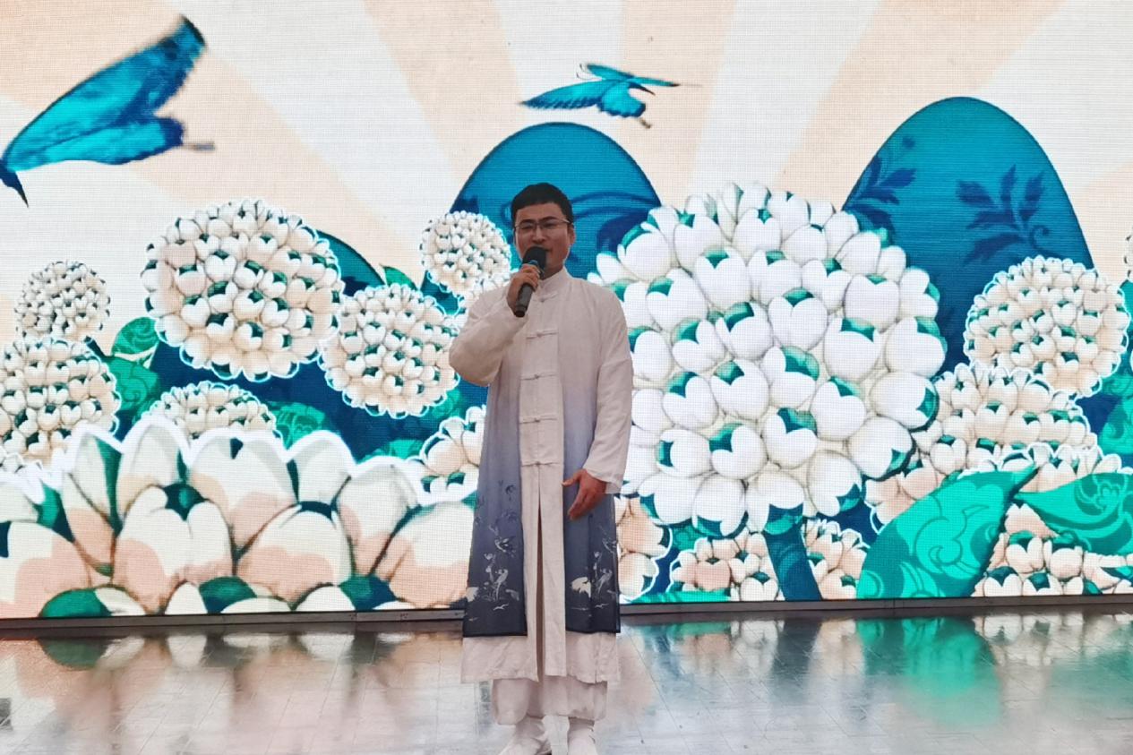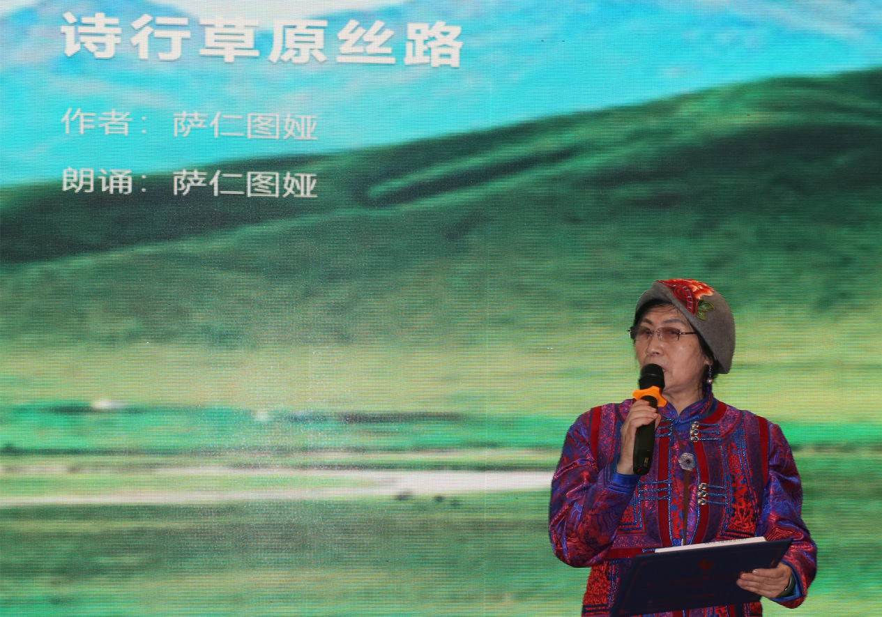 萨仁图娅朗诵自己的诗作《诗行草原丝路》