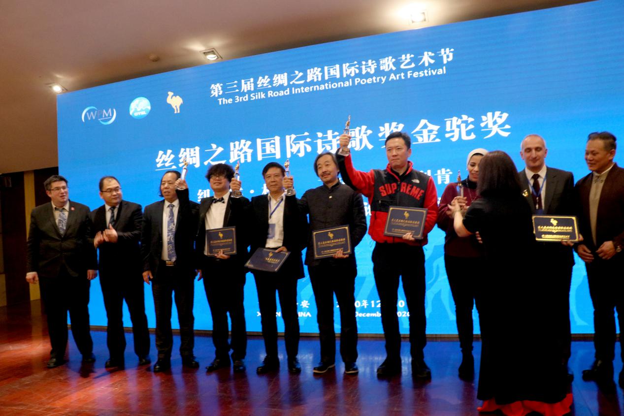 纽都然·杜门(土耳其)、丁尼克·泰利肯(克罗地亚)、洪三泰、远村、曹谁、曹波获丝绸之路国际诗歌奖金驼奖;
