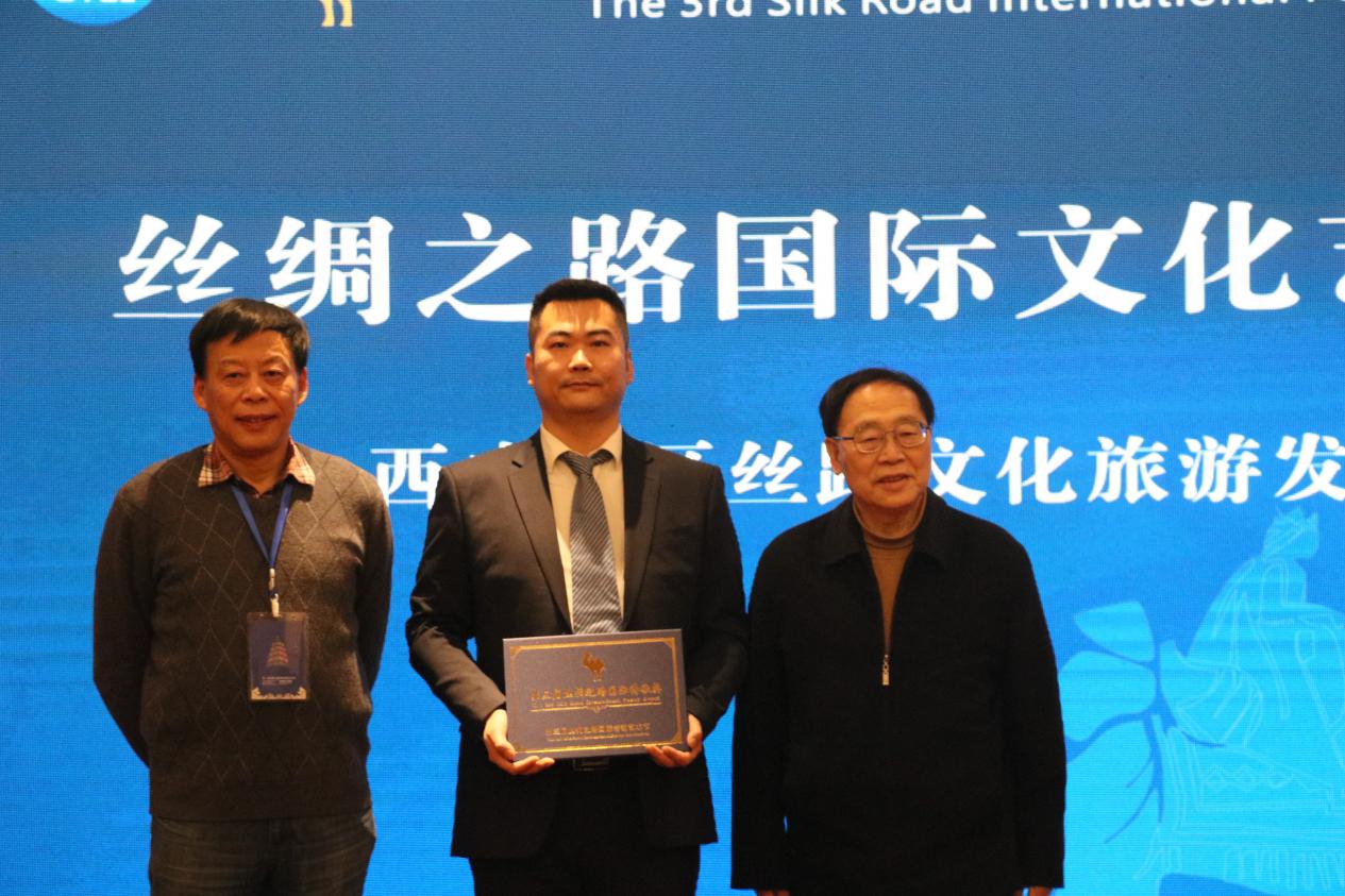 黄亚洲、吴思敬为西咸新区丝路文化旅游发展公司颁发了丝绸之路国际文化艺术传播奖,西咸新区丝路文化旅游发展公司张博先生作为代表,向参会人员介绍了该公司在西咸新区为发展丝路文化所做的发展规划与努力,以及丝路世界欢乐城项目的前景与意义。