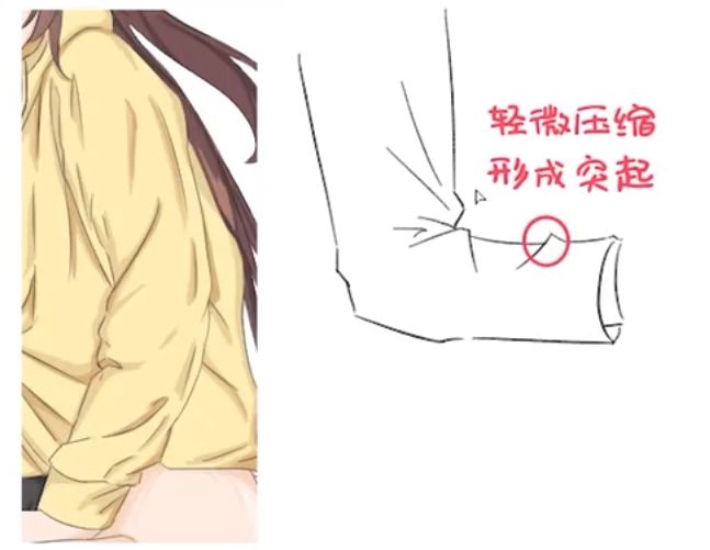 一般都会在比较宽松衣服的轮廓上,比如平时所画的萌妹穿了男朋友的衬衫这个时候就可以画轻微压缩而形成的小突起