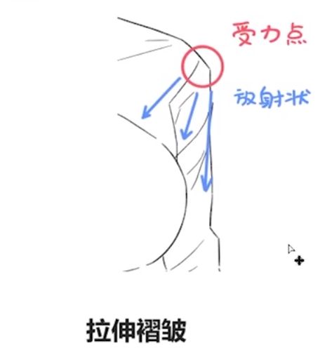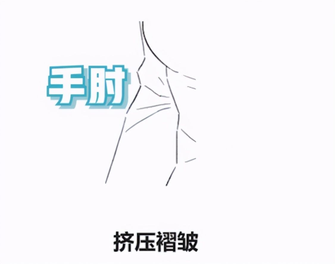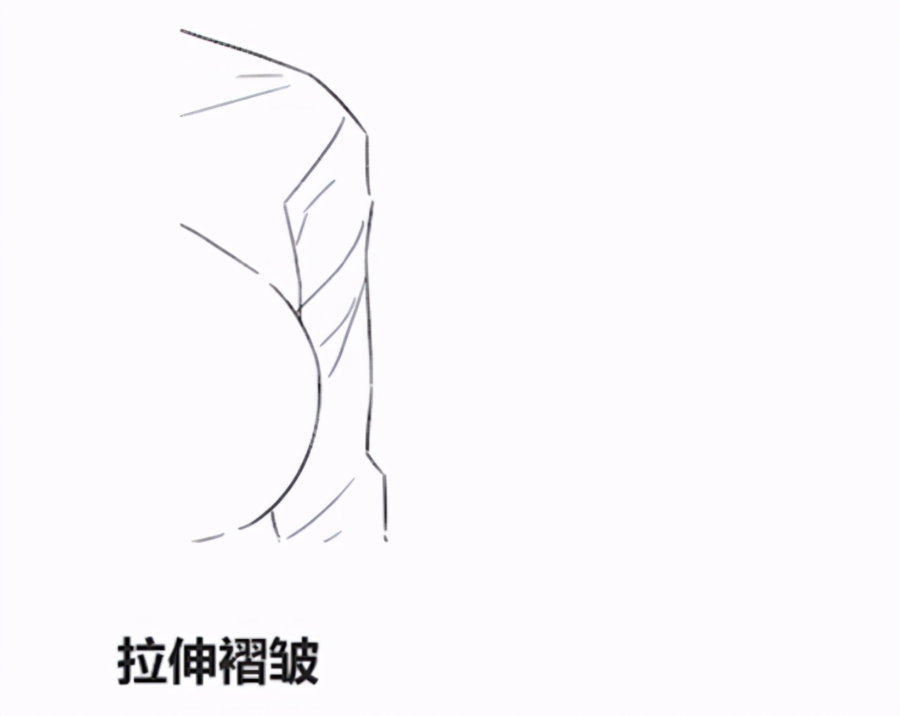 通过褶皱我们能判断出衣服的材质厚度还有身体曲线等,我们先来看一下褶皱的类型,其实褶皱类型在我们身上都是看得见的,比如拉伸褶皱。