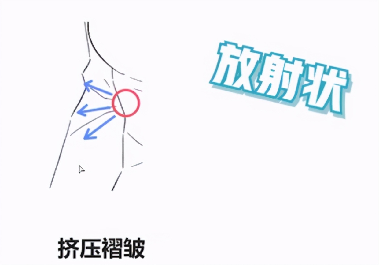 当它受到重力还有挤压的阻力的时候以我们压缩点作为基准,同样也是呈现放射状进行展开来画褶皱
