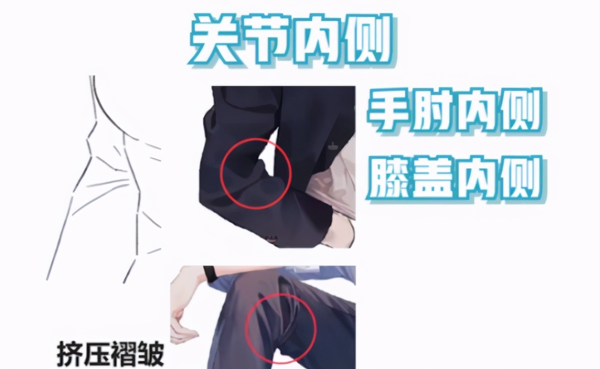 比较靠近关节内侧的褶皱会比较密集而远离我们关节内侧褶皱就会越来越松