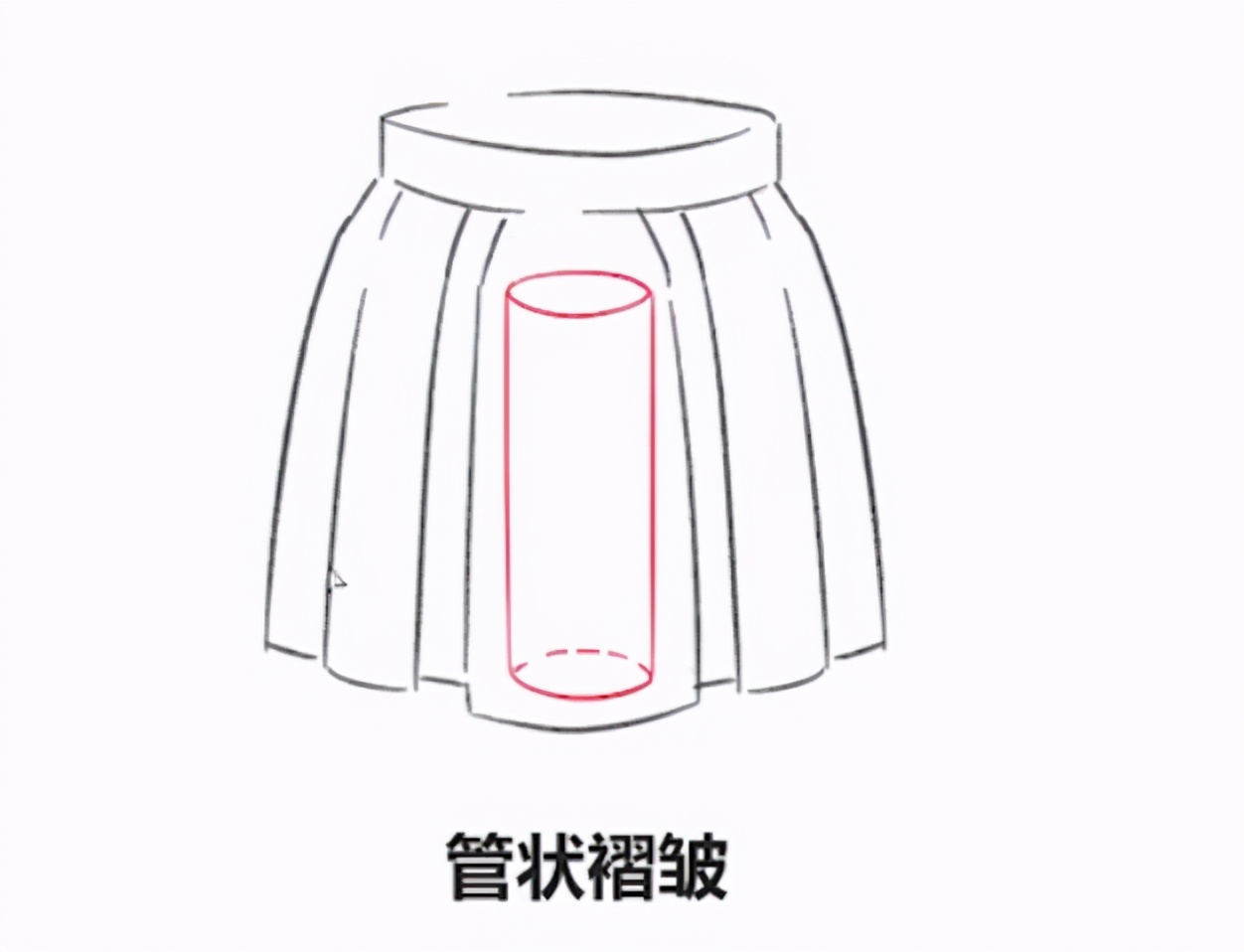 管状的褶皱像很多并排的圆柱体,无论是哪个角度的裙子