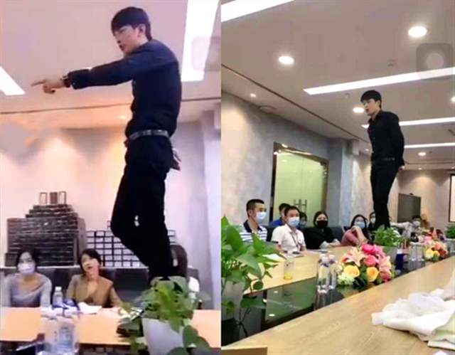 直播间内还在试穿产品的主播廖某,看到突然闯进直播间的一群便衣警察,廖某表情错愕直播戛然而止。