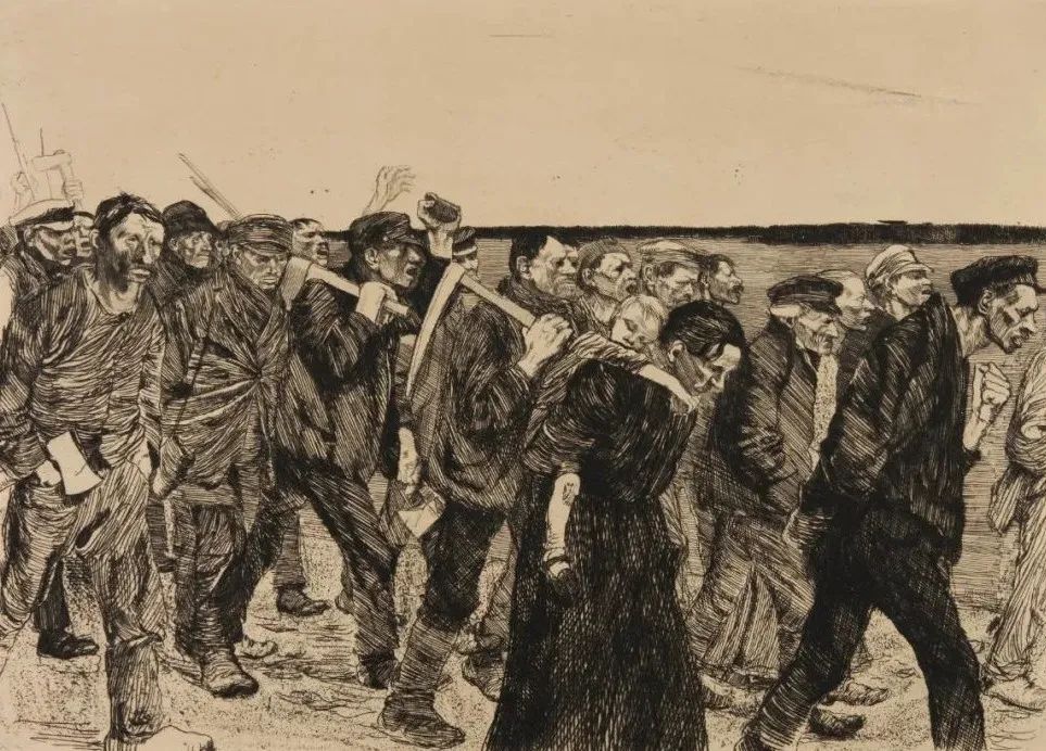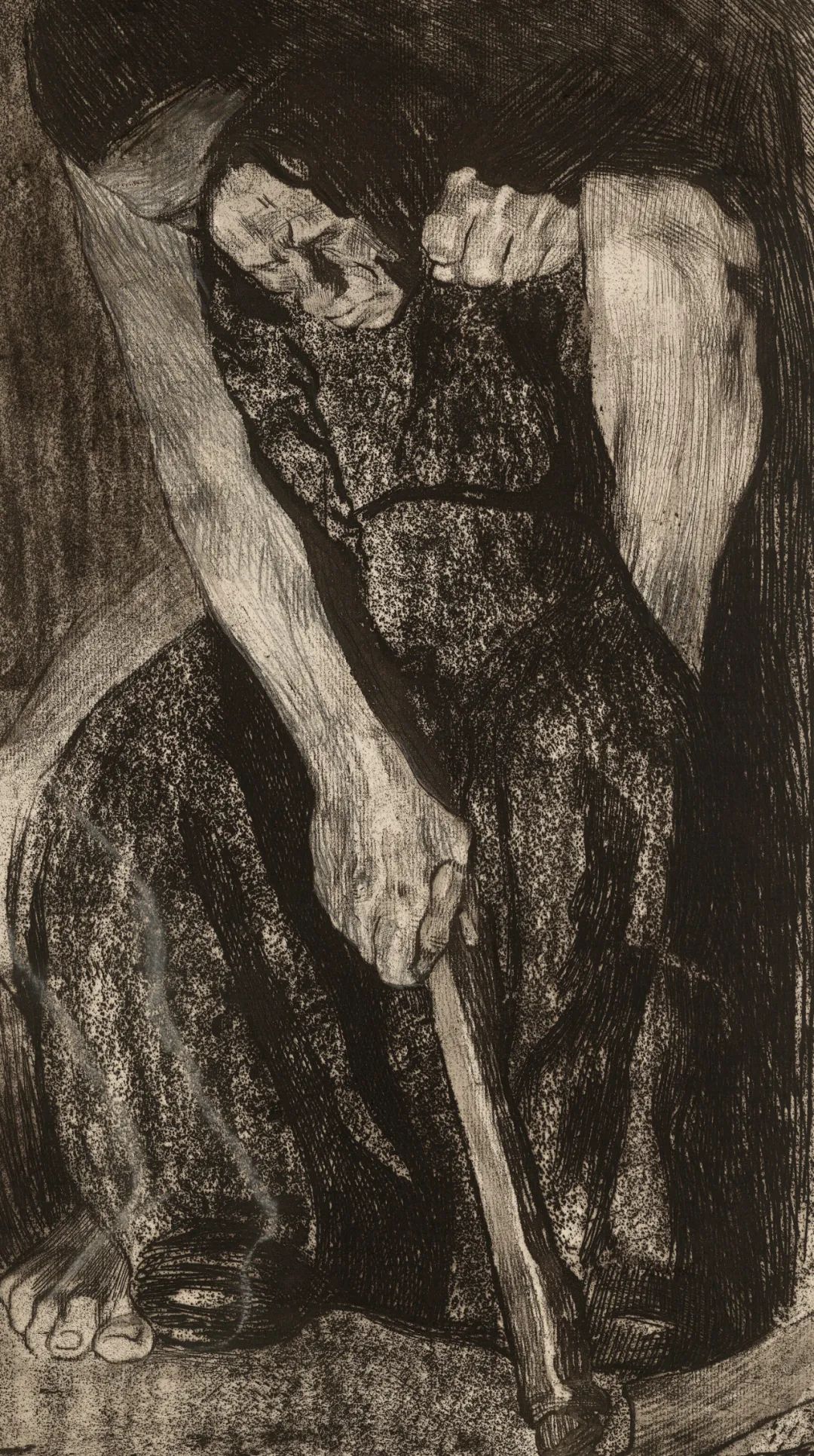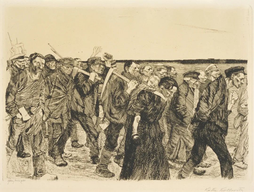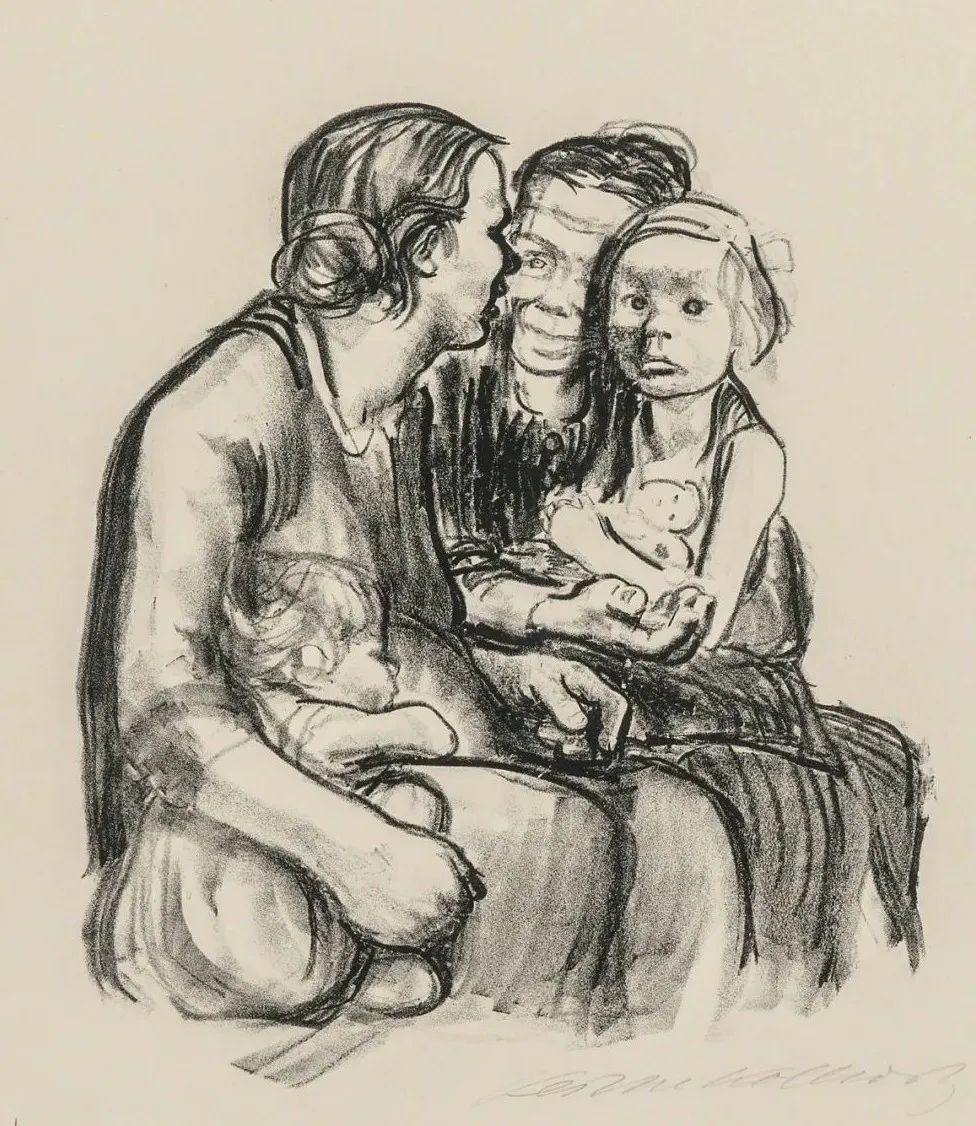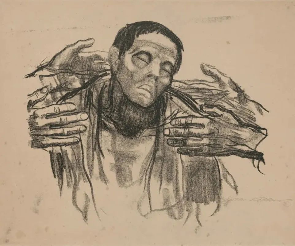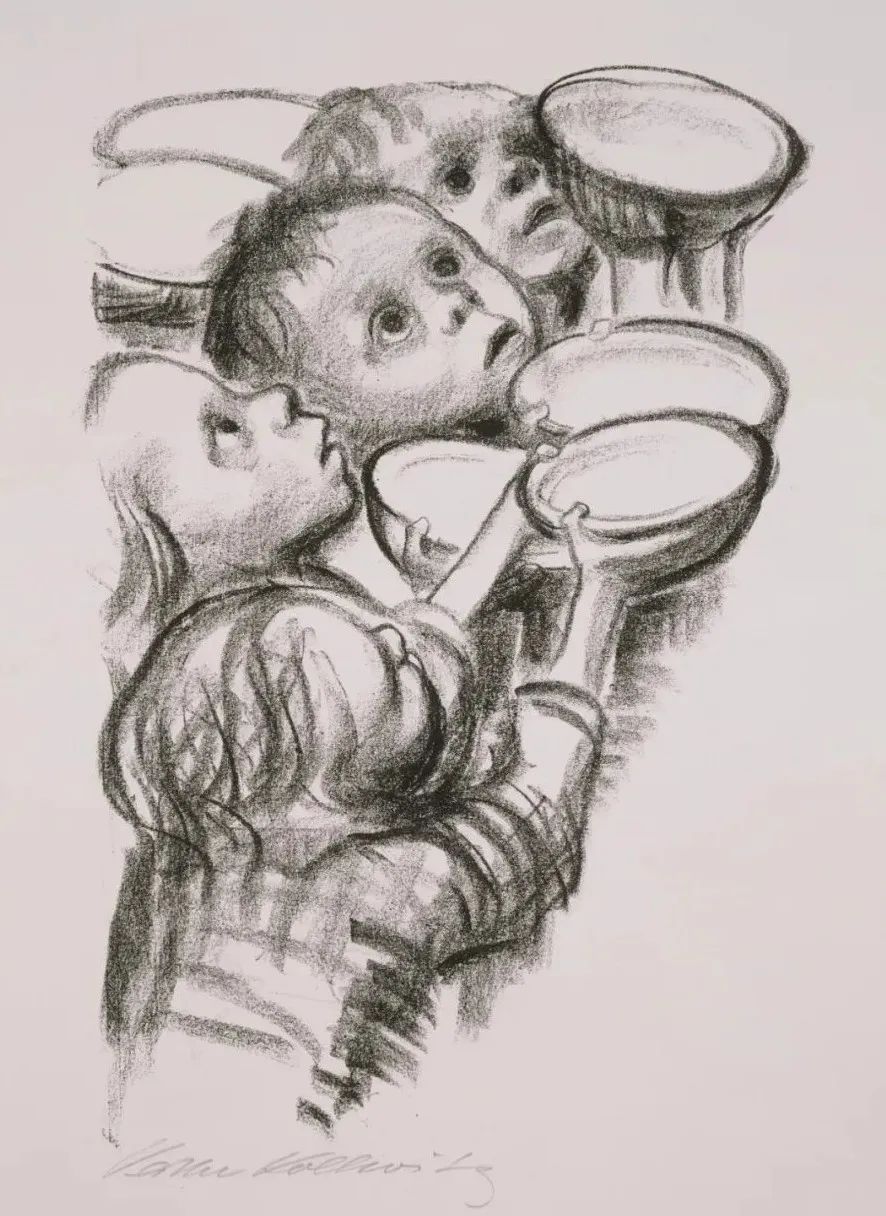 珂勒惠支作为20世纪德国最具影响力的艺术家之一,作品中极具力量的表现手法把人道主义精神和不屈抗争的强大意志表现得淋漓尽致。