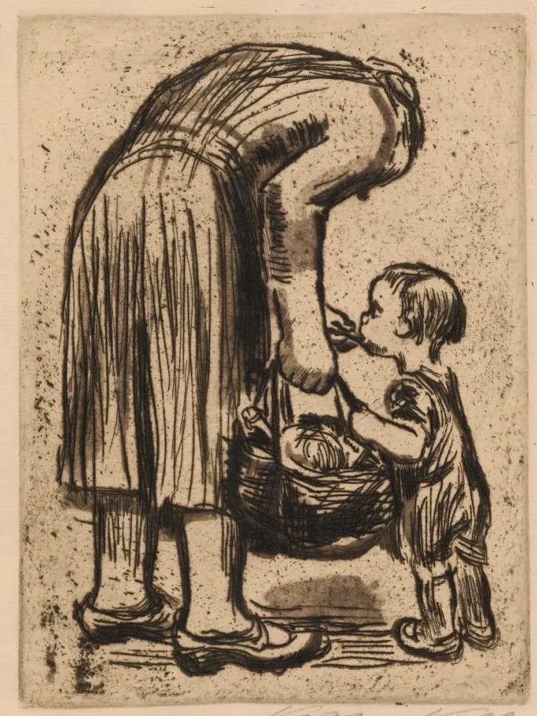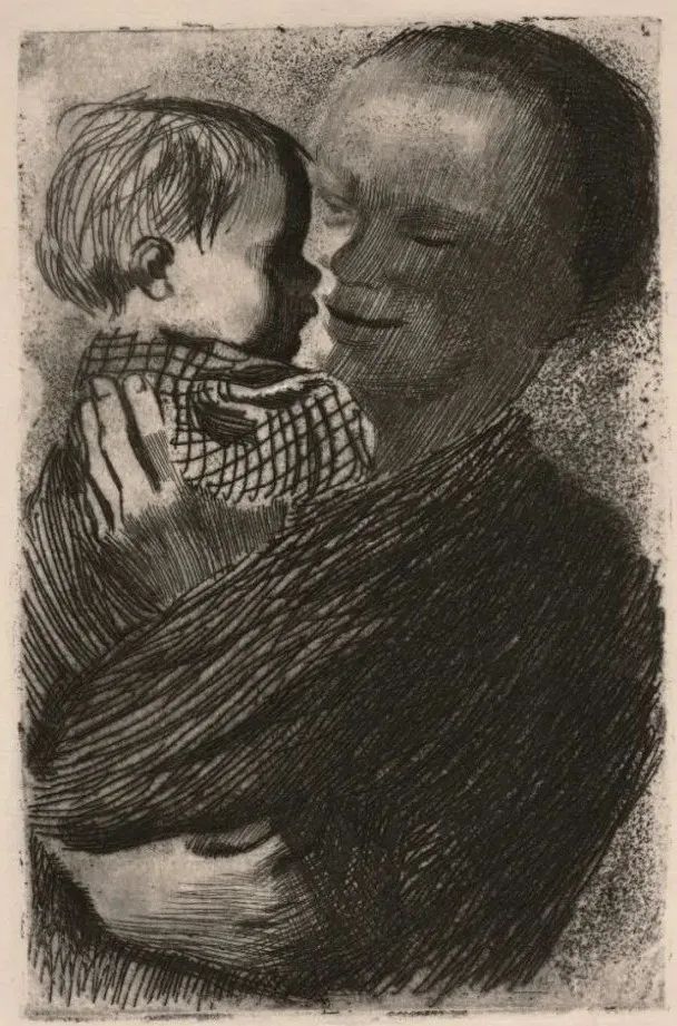 珂勒惠支笔下的妇女常常将孩子笼在怀中或护在臂弯 里,