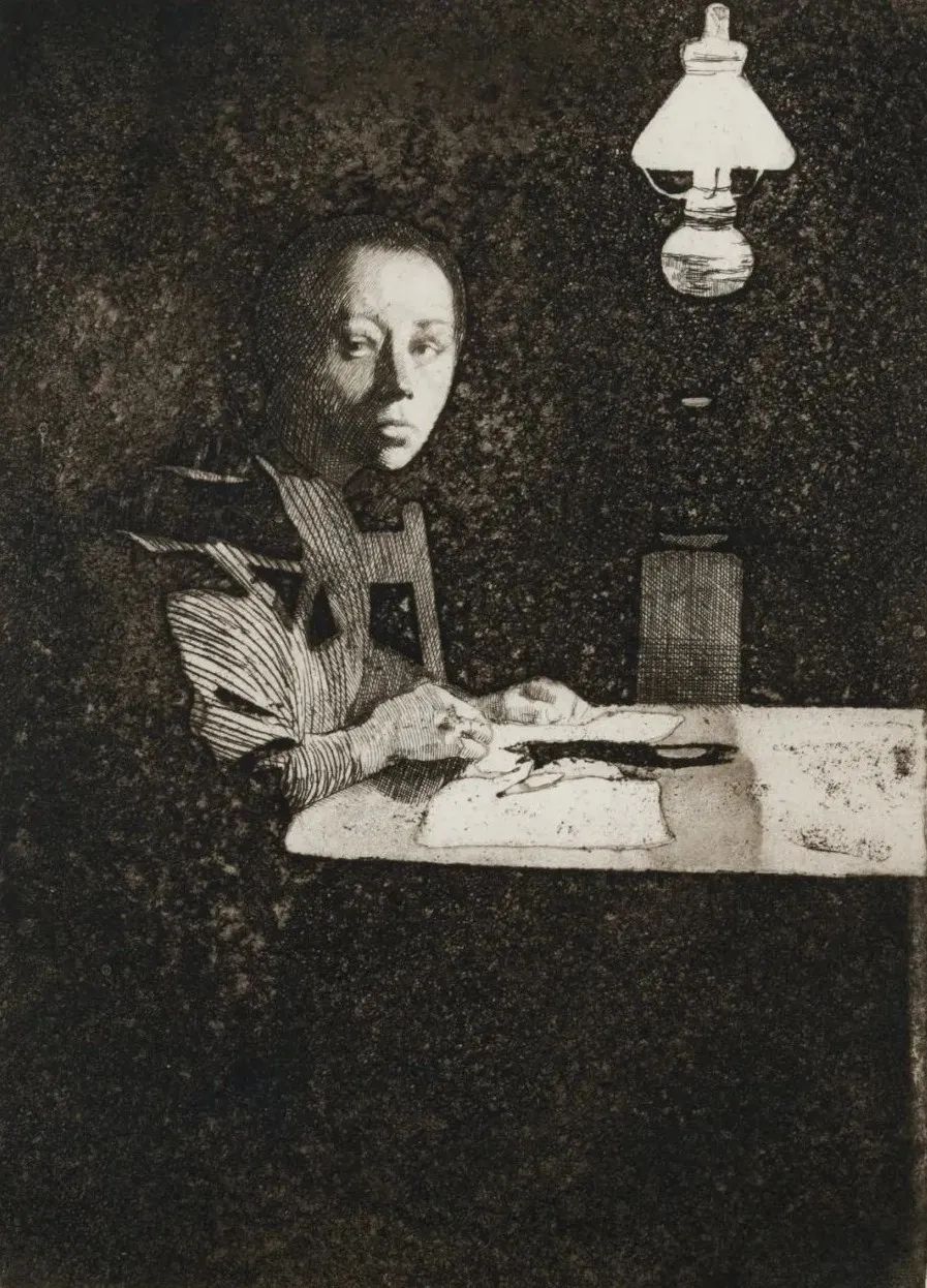 表现细腻的 铜版画和线条流畅的石版画上认识了 她,