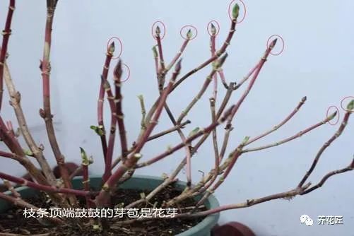 2、进入霜冻天气,要对绣球根茎底部和枝条要做适当的防护,避免被冻伤,移到避风的位置摆放。如果移到室内养殖就要注意了,要摆放在通风的位置,不通风或者室温过高会影响来年的花量。同时清理完枝条上的叶片也要清理土表的干枯落叶,这些叶子和乱枝不会成为花肥,只会滋生细菌和病害,春天发霉感染植株,把我们的花芽也弄烂了。