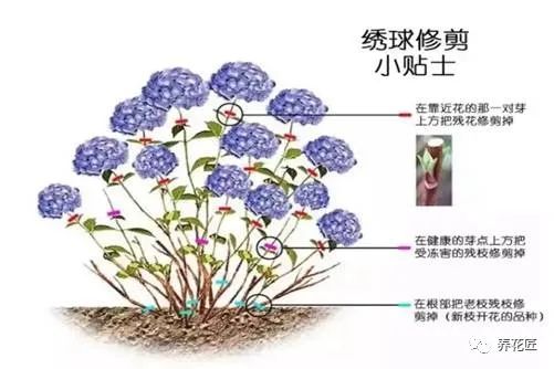 1、绣球花在秋季一般会有嫩芽长出来所以尽量不要修剪,不过到了冬天就可以修剪了,保留粗壮的主干之外,很多细弱枝条都是可以修剪掉的,这可以保证植株共养集中,来年绣球花植株底部会长出新的分枝,花朵也会更大。在春暖后就不要再修剪了,否则会影响春夏季节开花。