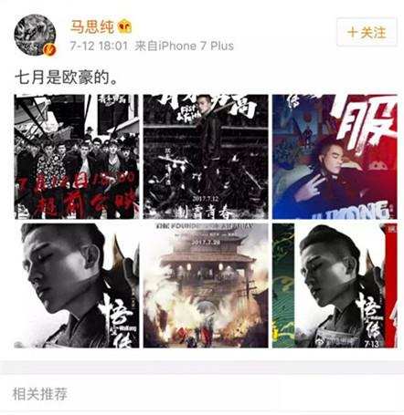 2017年,欧豪主演的几部影片同时上映,女友马思纯借用自己在《七月与安生》中饰演的角色名——“七月”,霸气为男友作品打call,一语双关。既为男友宣传了电影,又高调的秀了一波狗粮,这恩爱秀得让网友直呼“齁甜”。