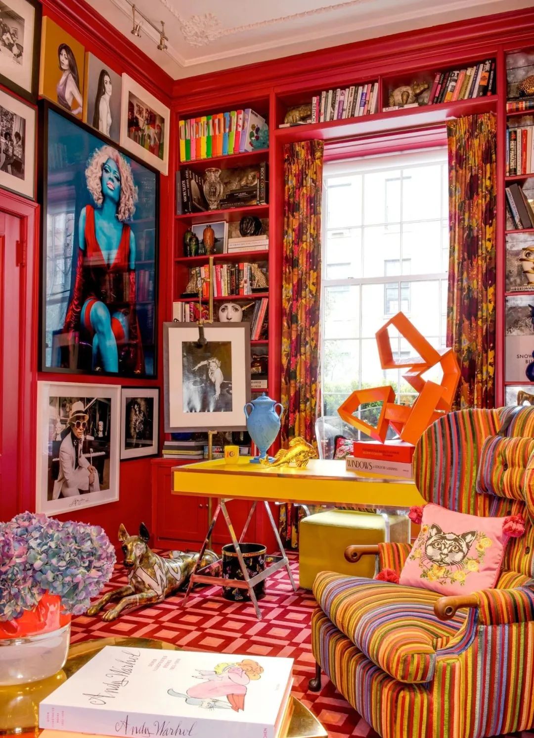玄关处是“极繁主义”者们来展示对于颜色偏爱的第一道场。如Dita玄关处的壁画或标本一般,Luke Edward Hall的玄关则挂满了各种各样的装饰画与装饰镜,墙色在去年被刷成了新欢颜色蛋黄色,在此之前,这里的墙面一直都是嫩绿色的。