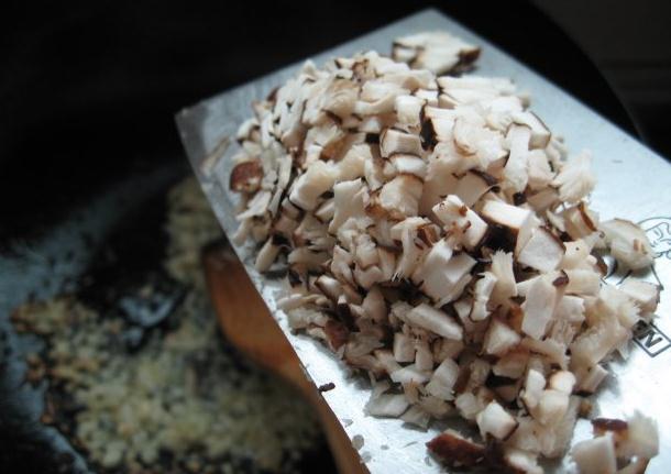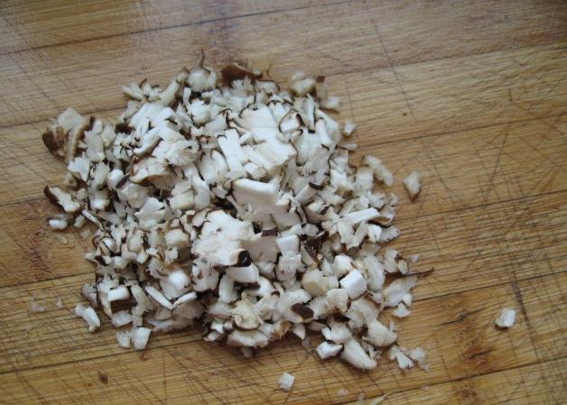 3、将辅料作料:蒜头、姜、鲜香菇切末备用;