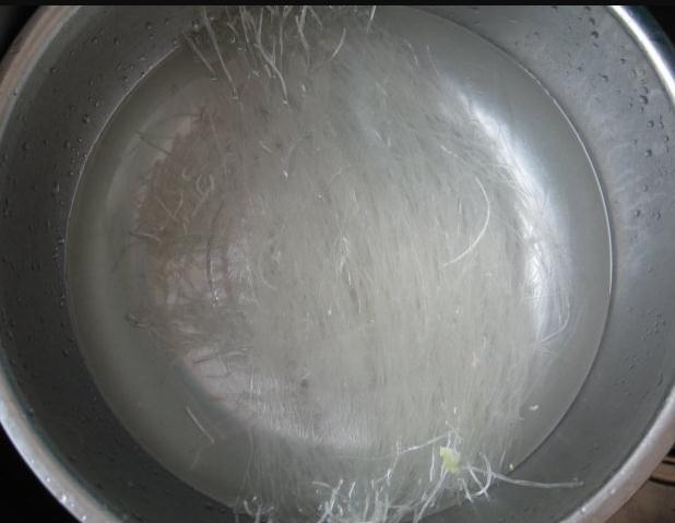 2、同时我们需要将粉丝用冷水浸泡20分钟左右,使其变软增加口感;