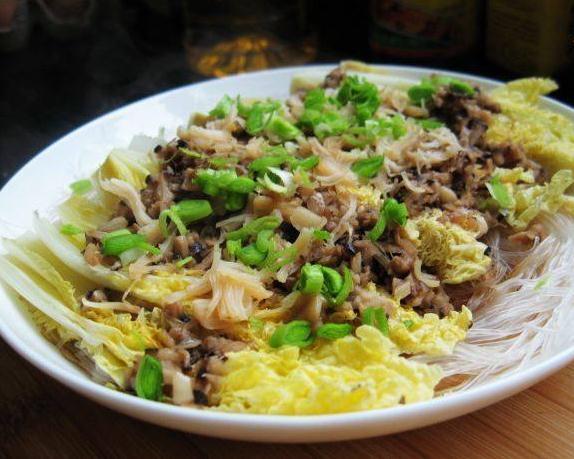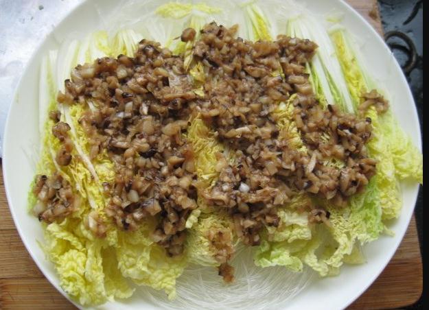 辅料:油、盐、味极鲜、蒜头、姜、干贝、鲜香菇、绿豆粉丝