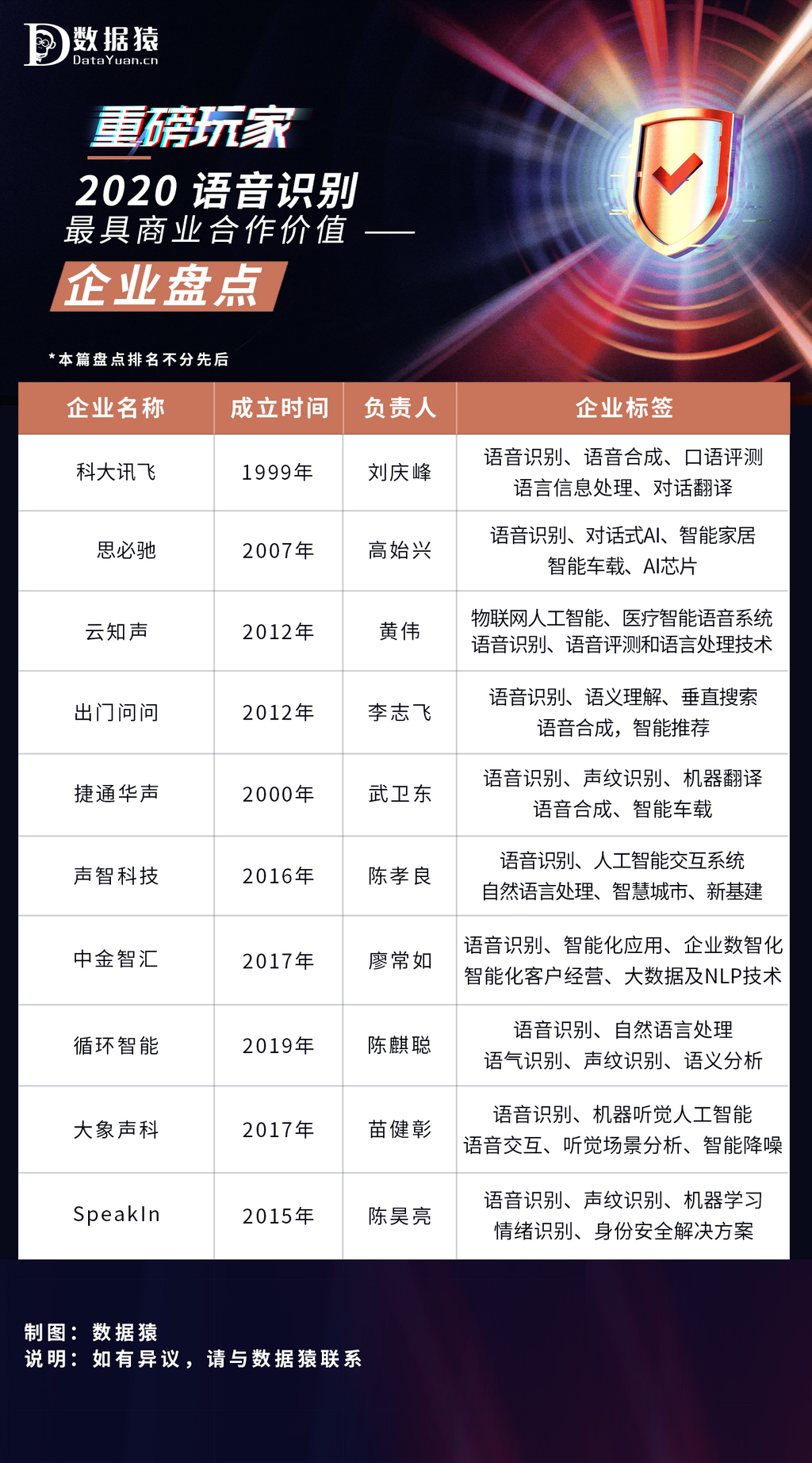 以下是本期《2020 语音识别领域最具商业合作价值企业盘点》的相关内容,经数据猿整理发布: