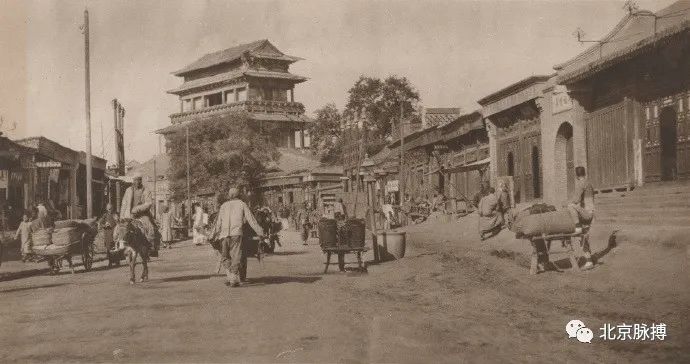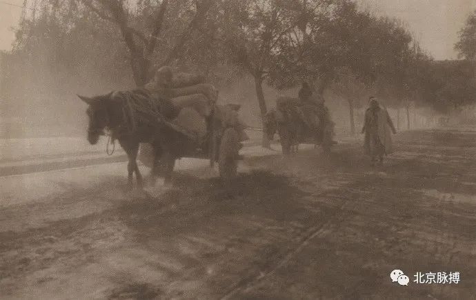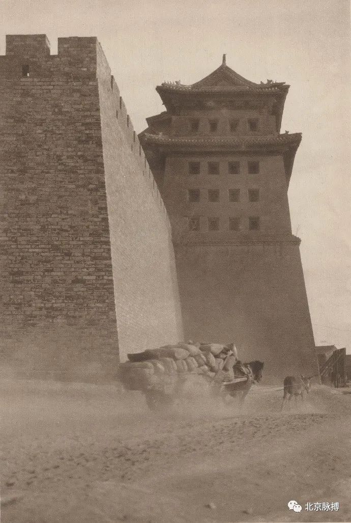 西直门城根走过的大车,尘土飞扬