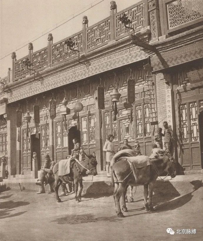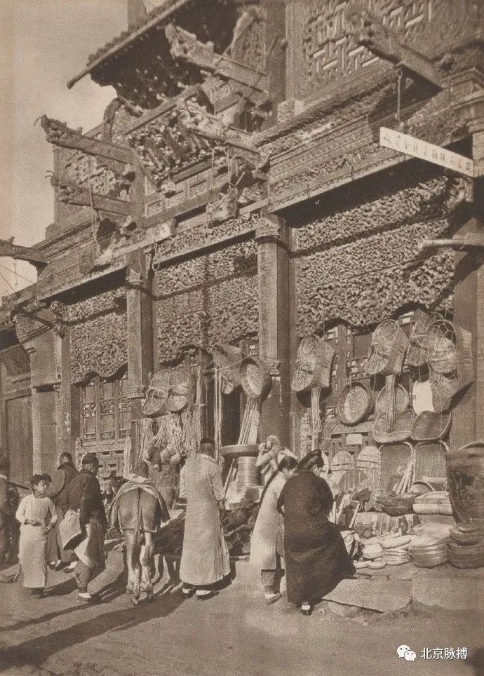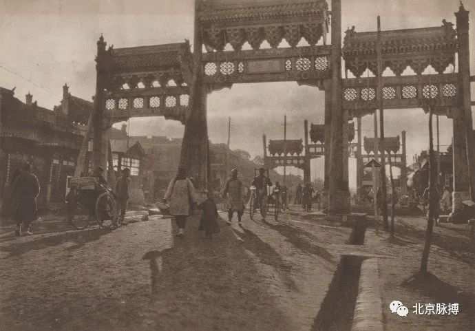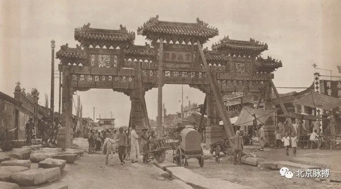 老北京铺面,鼎茂恒酱菜铺,还立有单楼冲天柱门脸牌楼