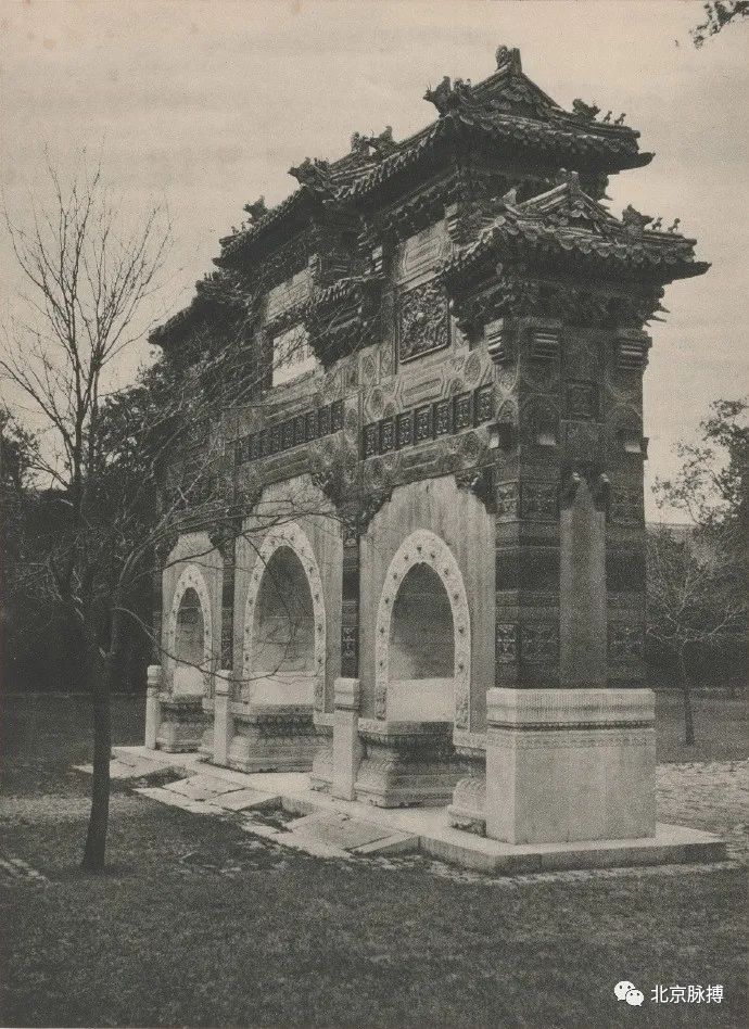 朝阳门外大街,东岳庙前西牌楼,东面额“灵岳崇祠”