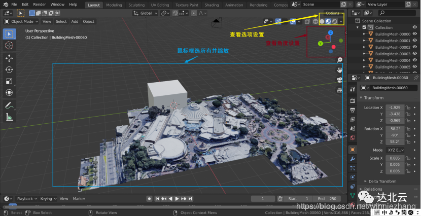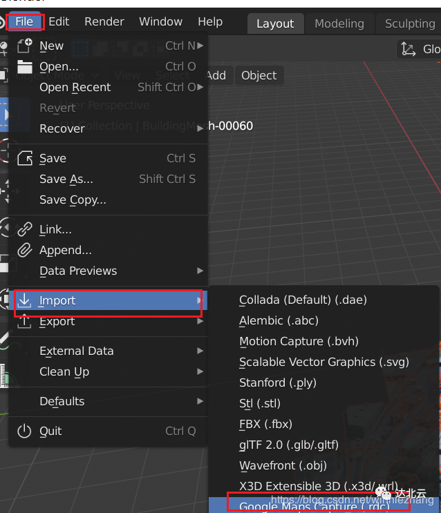 注意:访问谷歌地图需科学上网;点击截取按钮后要拖动一下地图,Blender导入时请使用英文界面,中文可能造成失败。