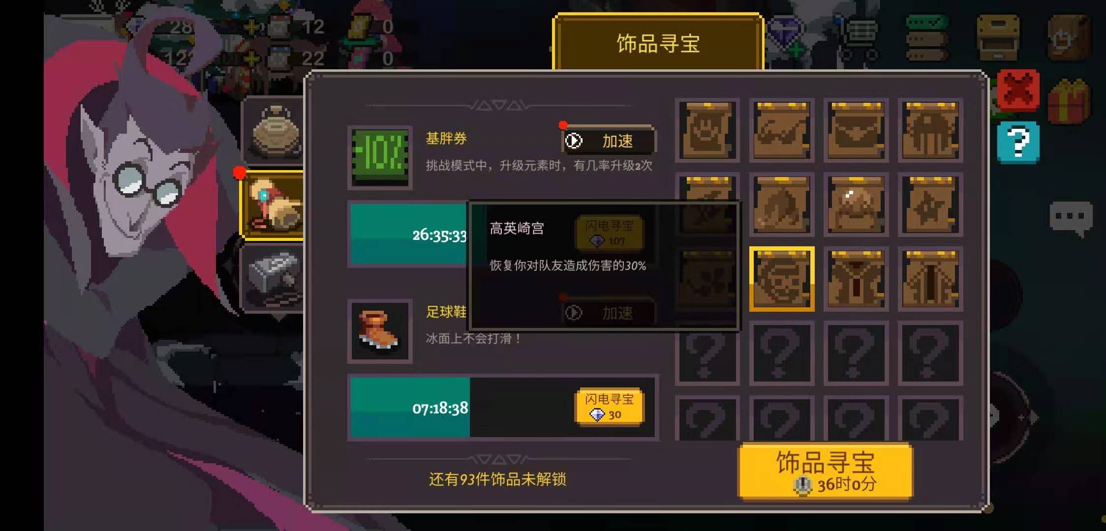 还有图标是“-10%”的基胖券,影射那个逢年过节就从我们口袋里拿钱,还从来不会数3的胖子商人;图标是带着墨镜一脸神秘微笑的“高英崎宫”,影射那个致力于教导玩家如何写“死”字,以及为玩家提供无微不至的受苦服务的著名制作人。
