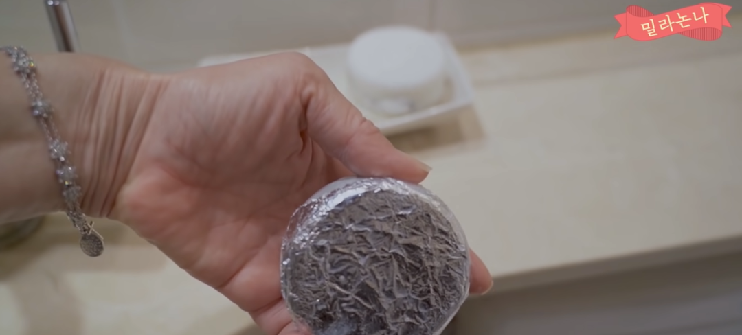 奶奶还传授了使用香皂的技巧:为了防止香皂变软塌掉,可以用锡纸包住香皂的一侧,这样既好拿又节省香皂。