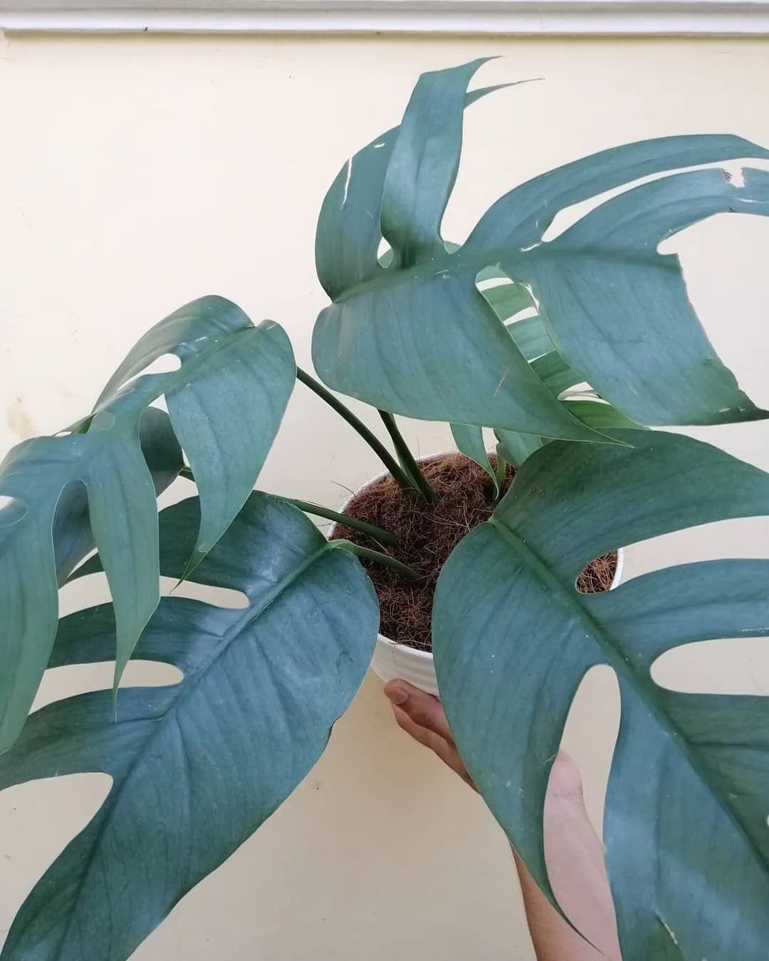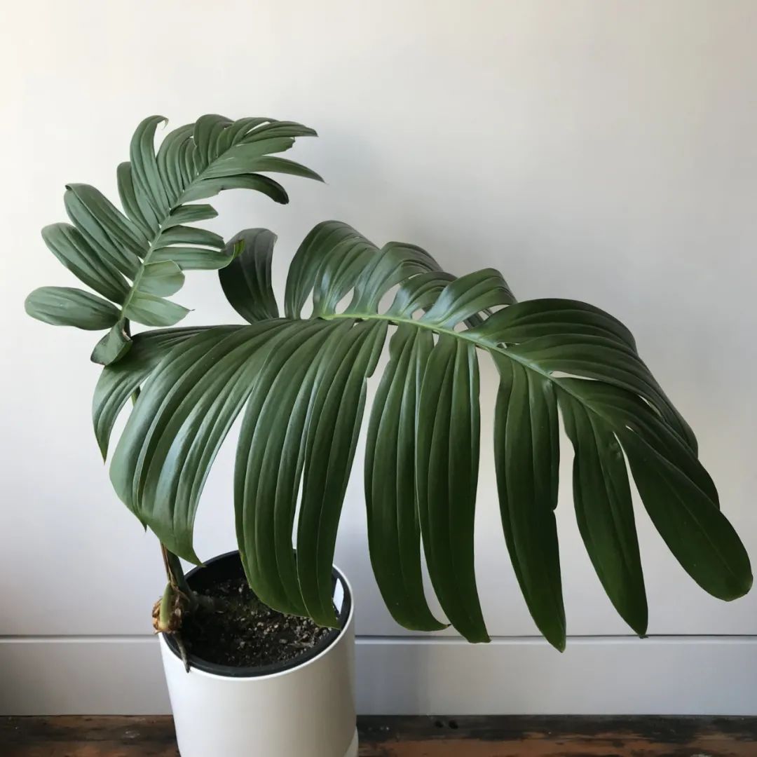 上面是蓝灰色叶子的麒麟尾品种:Epipremnum pinnatum 'Cebu Blue。