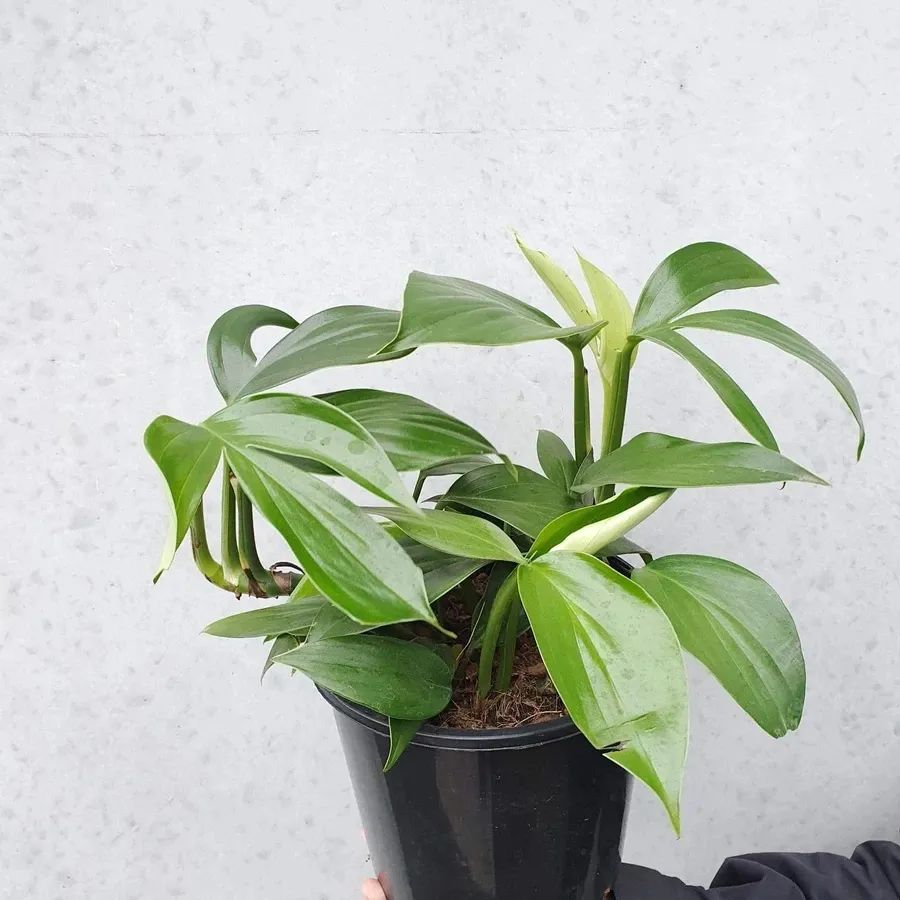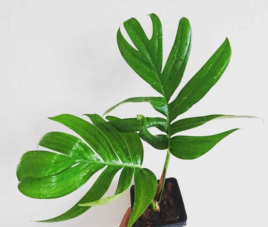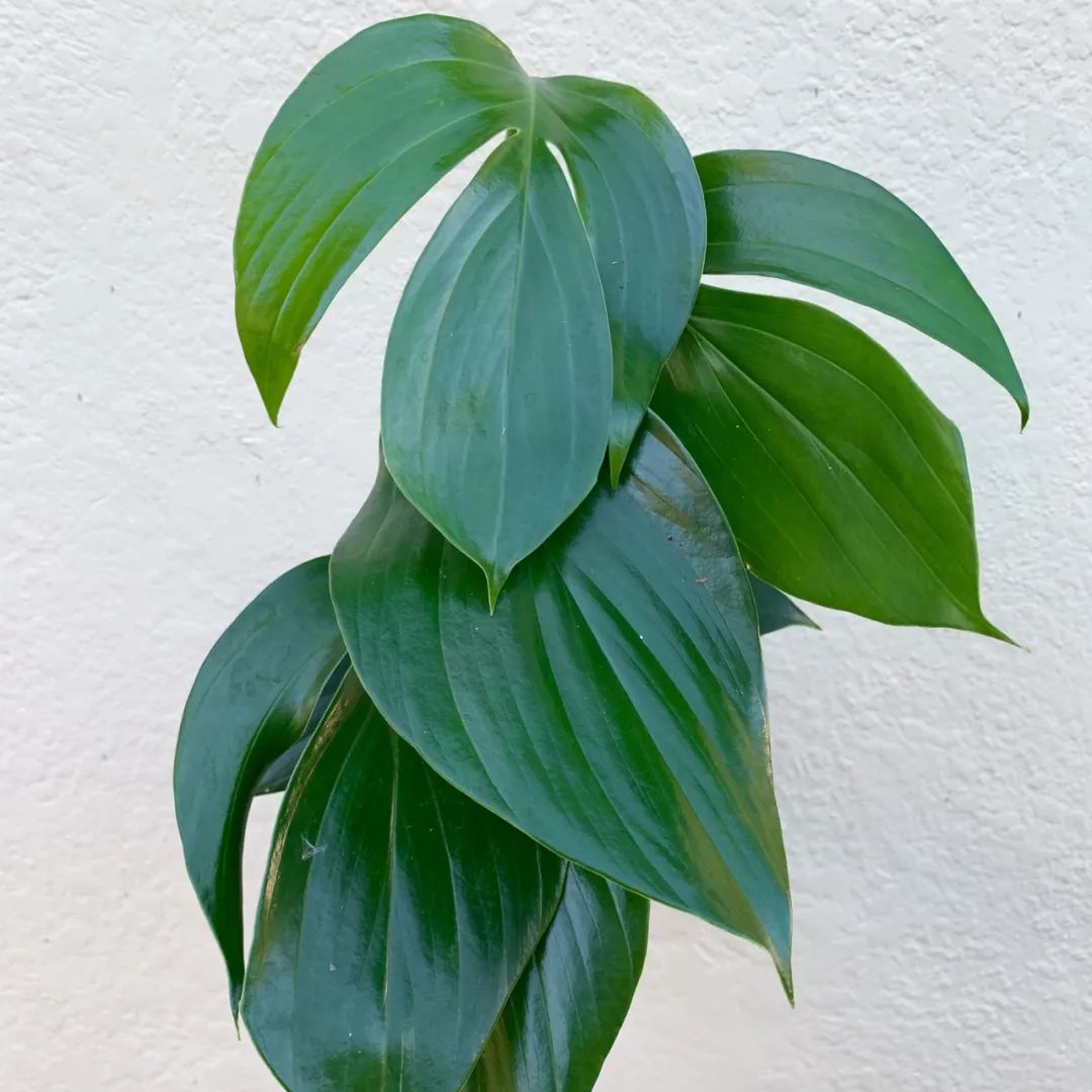 麒麟尾的茎会不断木质化,就会长成非常高大的多年生木质爬藤植物,它的叶片是革质的,嫩叶是呈披针状、椭圆形。麒麟尾叶子小巧的时候,看起来就很像绿萝,但叶子稍微长大一点,叶子会不断长长,叶片成熟之后会有很多裂纹,叶面看起来就像是羽毛状的裂纹,和龟背竹略微相似,但是它的叶片要比龟背竹要长很多。