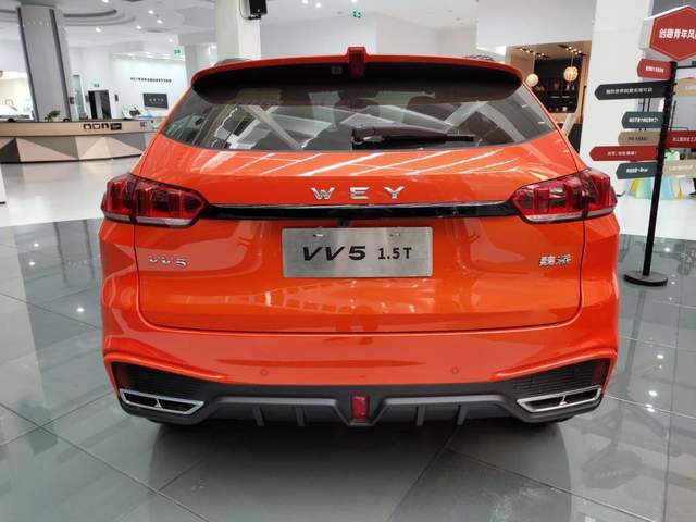 在尾部的位置上,针对美学与对称设计,2021款WEY VV5元气橙版带来了2*2四出排气的设计,但实际上只是双边单出的排气,重点是展现“元气橙”的时尚气派。值得一提的是,在车灯和排气口也带来了“镀铬”的元素点缀,完全是与车头ID设计的相呼应。