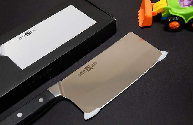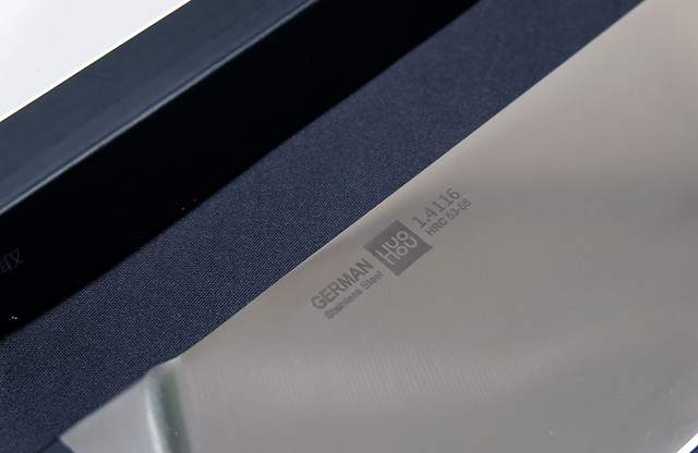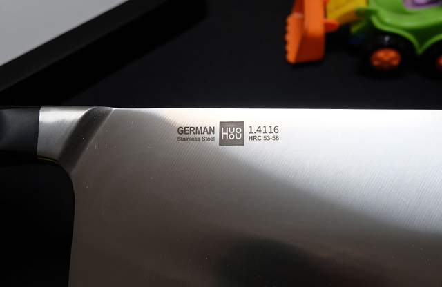 另外火候在这款刀具上印上了精致的logo,不知道采用什么技术,无论怎么擦拭都不会被擦掉。这款刀具的材质选用德国进口的钼钒钢设计,富含铬、钼、钒三种稀有金属元素,能够极大地提升钢的防腐性、耐磨性和韧性。