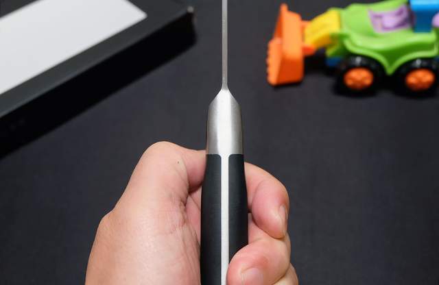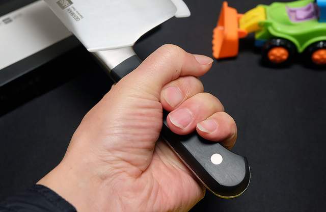 这款刀具的刀柄采用复合人体工学设计,13厘米的加长手柄握感舒适,适合不同用户人群手掌大小使用,同时在刀柄的尾部,采用突出设计,同时还具有一定的摩擦力,有效防止刀具的意外掉落。