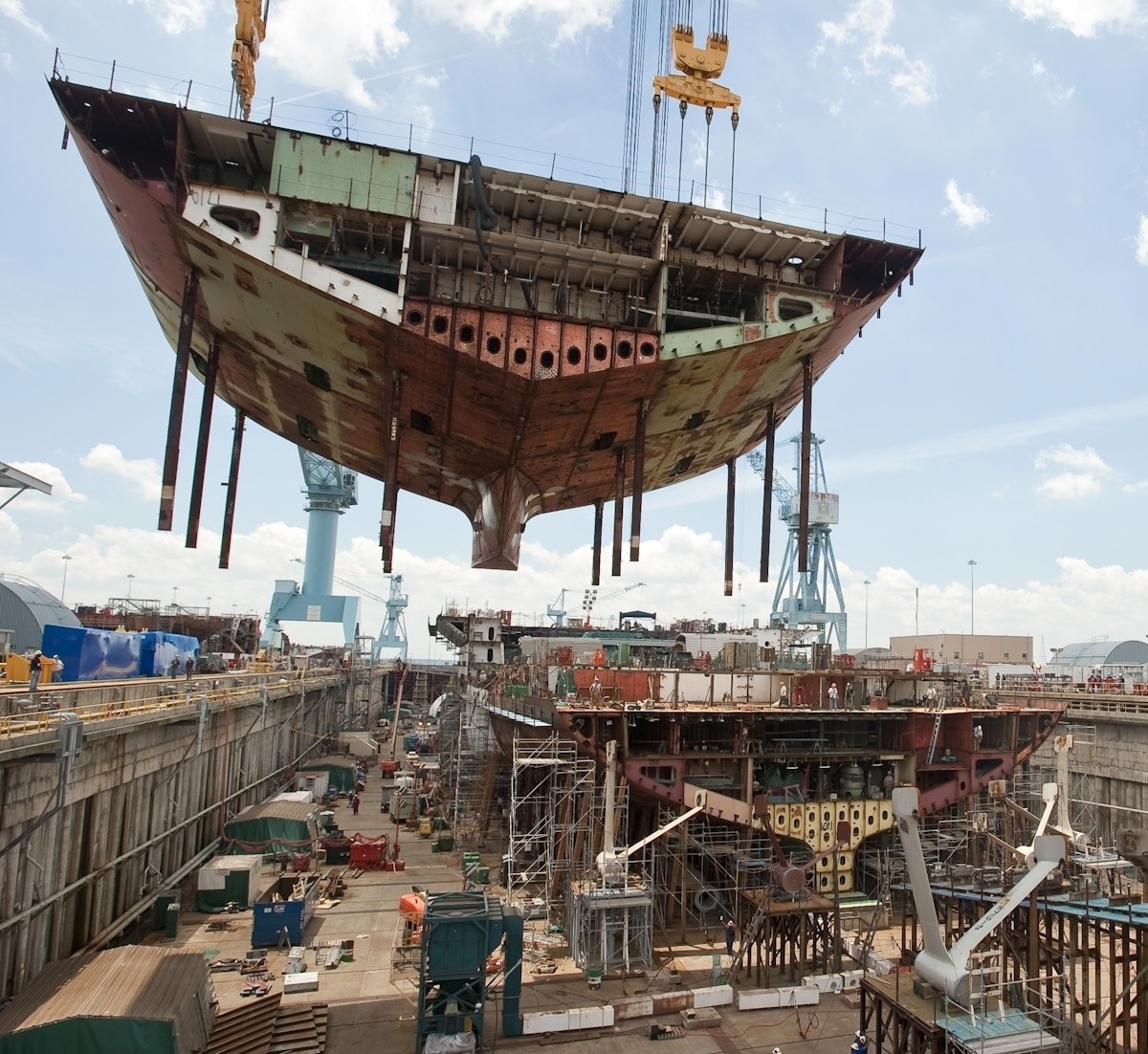 包括1号舰福特号在内的所有福特级航空母舰皆由位于维吉尼亚州纽波特纽斯的诺斯洛普·格鲁门纽波特纽斯(Northrop Grumman Newport News,NGNN,其前身为纽波特纽斯造船厂)建造,该造船厂是目前美国境内唯一一个拥有补给或建造核动力航空母舰能力的造船厂。