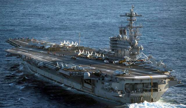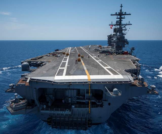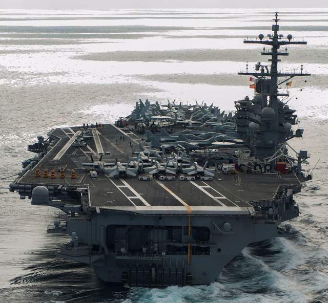 舰载武器部分:舰载战机:F/A-18A/B/C/D战斗机×24~36;E-2C空中预警机×5;EA-18G电子战飞机x6;SH-60F直升机×6。防空导弹:3套MK-29型ESSM海麻雀近程防空导弹发射装置;2套MK-31型RAM海拉姆近程防空导弹系统。近防武器:3套MK-15型CIWS20毫米密集阵近程防御武器系统。以下图片展示了布什号航空母舰,欢迎军迷鉴赏。