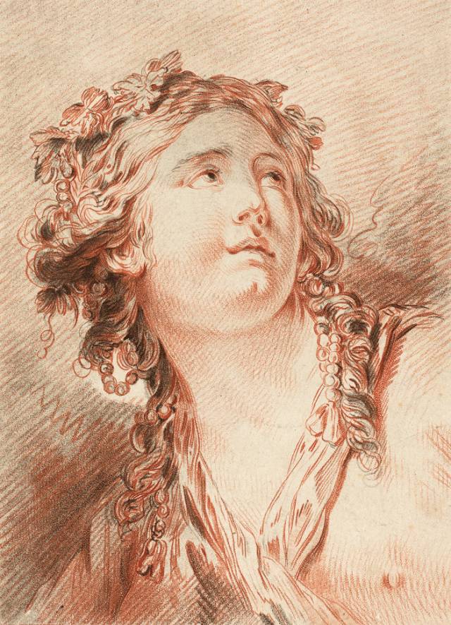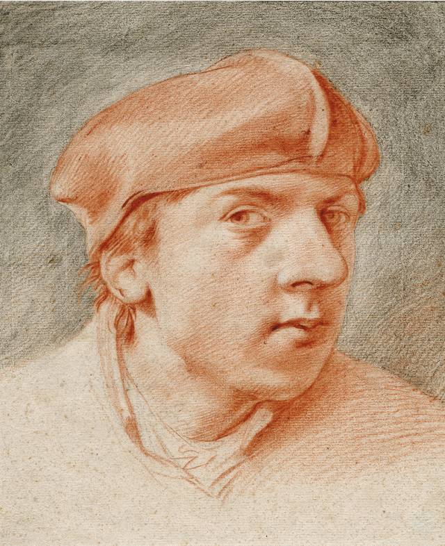 红、黑色粉笔/褐色墨水/纹纸
