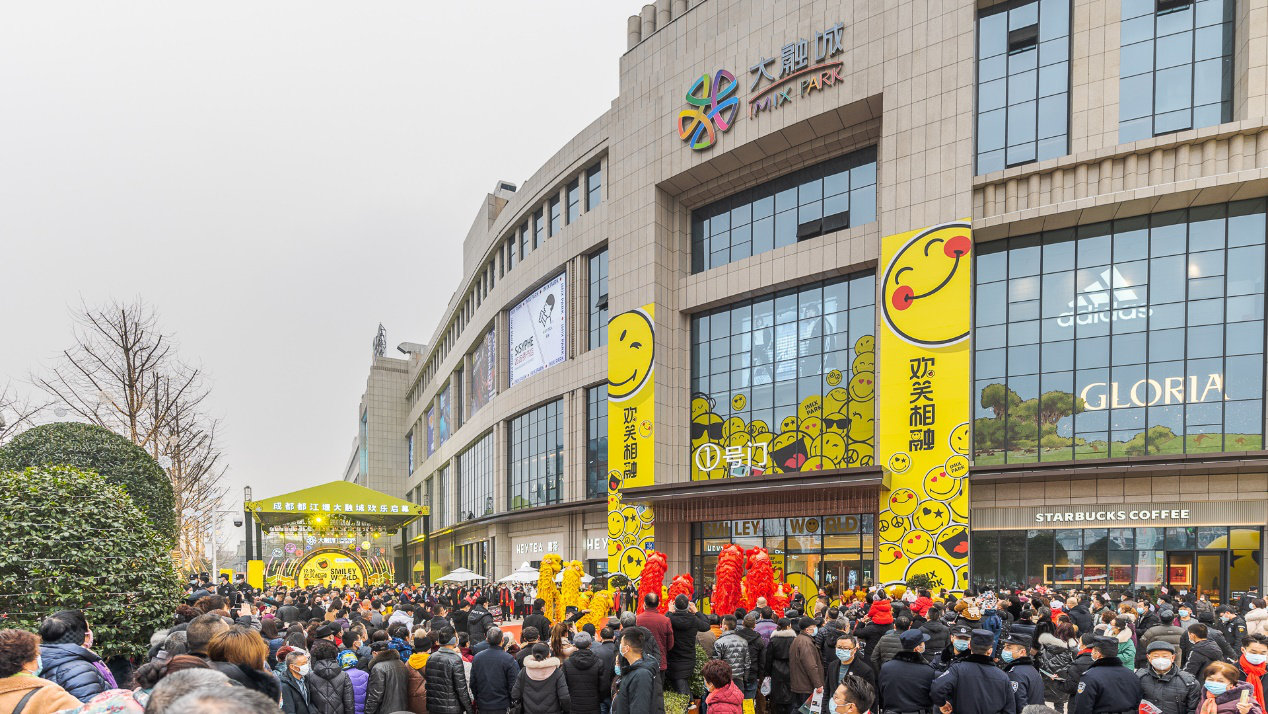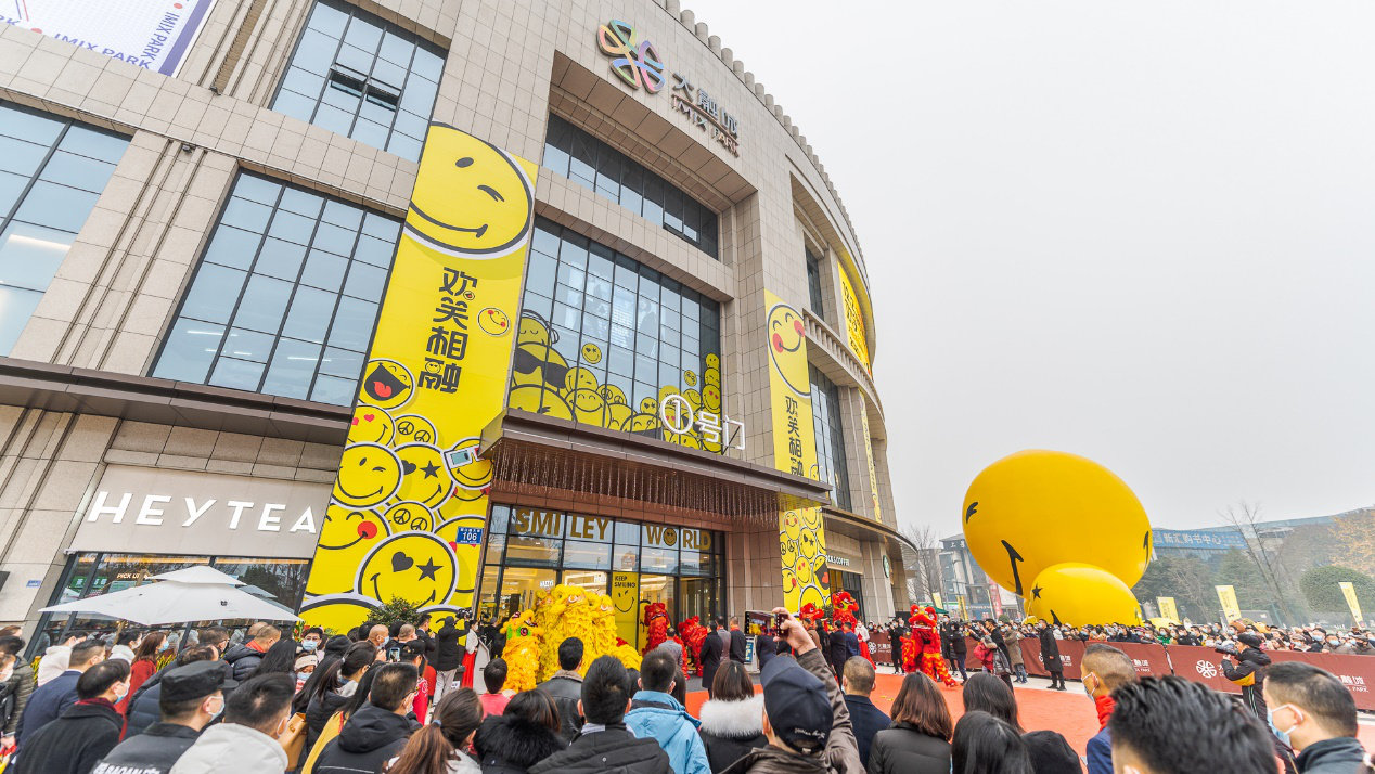 2020是令人倍感复杂的一年,历经疫情,人们对自由、欢笑呈现更大的诉求和渴求!成都都江堰大融城压轴登场,携手法国经典品牌IP「SMILEY WORLD」欢笑来袭!将令人熟悉的黄色笑脸遍布全城,向大众传播着热情、乐观、向上的积极态度和温暖的祝福。