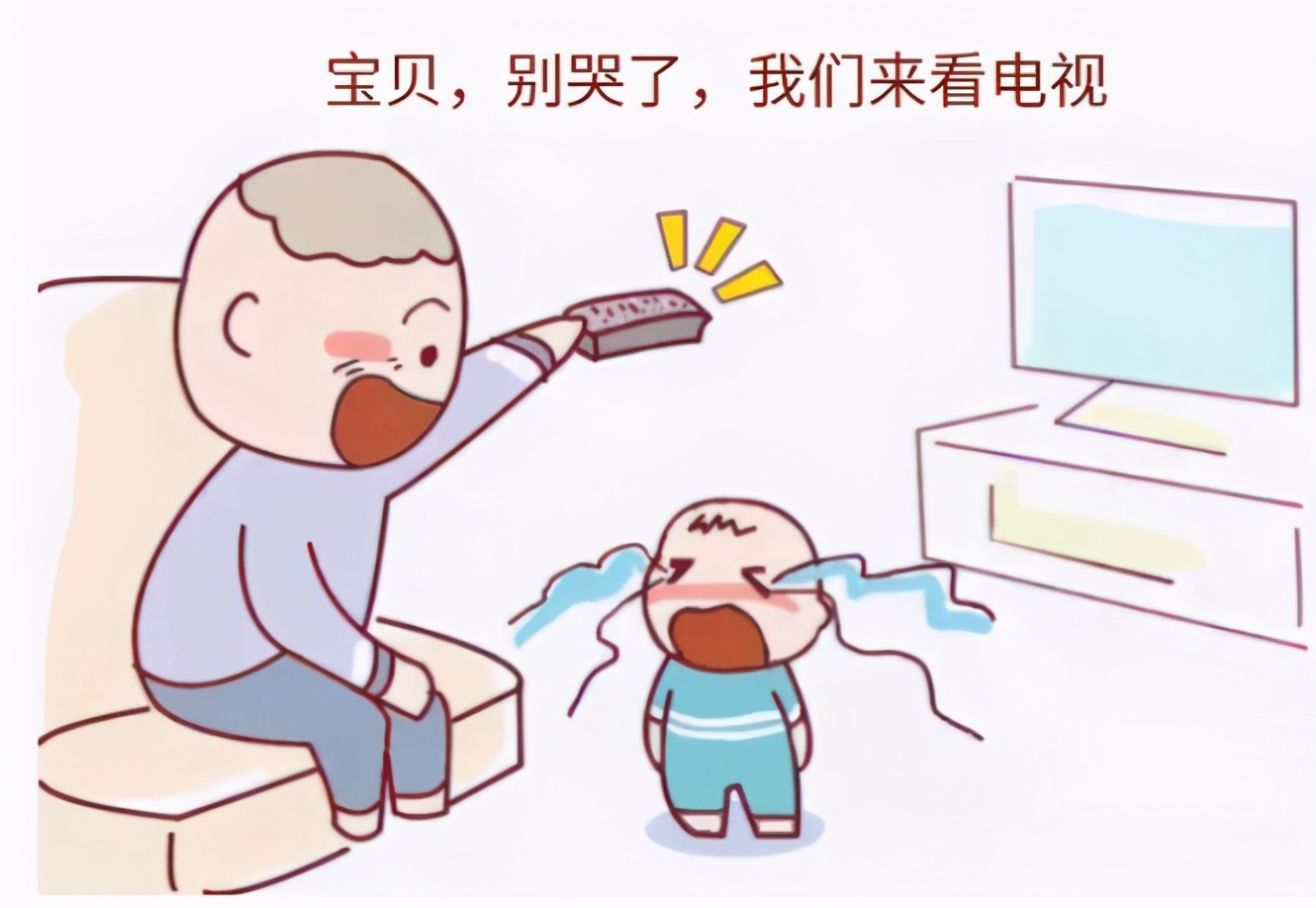 像我邻居家就是这样,因为是和老人住在一起,家里还就这一个孩子所以家里的老人对孩子是十分溺爱,孩子一哭一闹,都会立马打开孩子最爱的电视节目,孩子也是很给面子,电视一开立马就不哭了,当看到有趣的情节还会开怀大笑,完全忘了自己刚才还在哭,看到这个孩子,我不禁为他的未来感到担心!