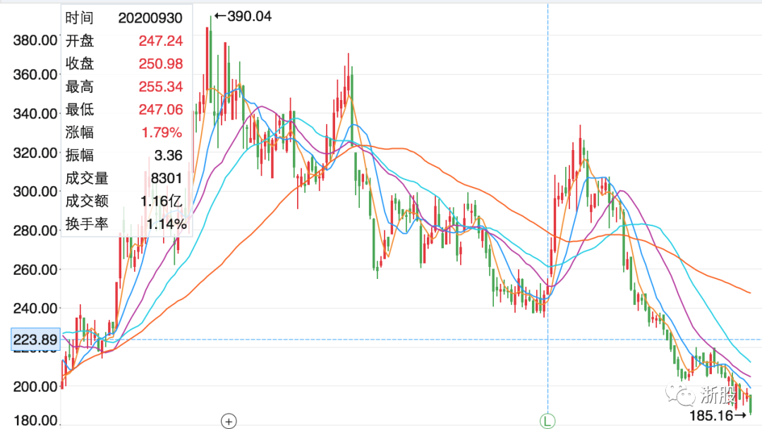 今年9月30日,壹网壹创17.53%股份解禁,当日后复权价格251元,是发行价的6.55倍。