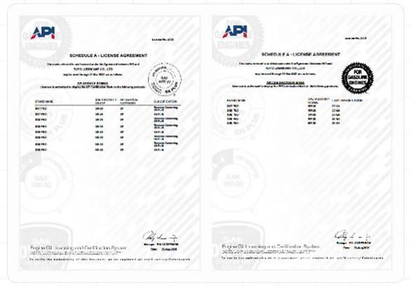 XK-9Pro、XK-8Pro、XK-7Pro经检测符合API(美国石油协会)、ACEA(欧洲汽车制造协会)、ILSAC(国际润滑剂标准化及认证委员会认证)三大国际认证标准与规范。