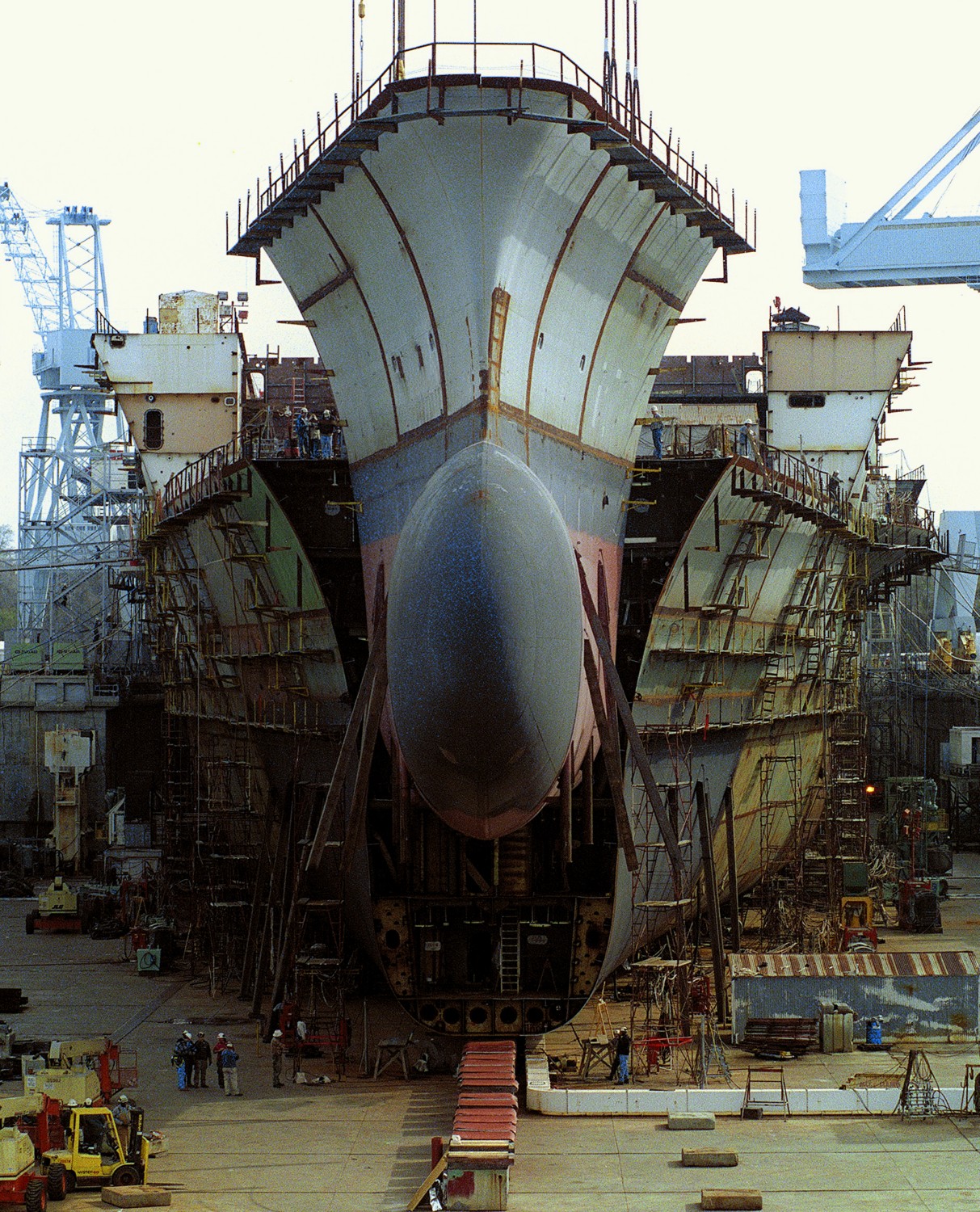 此外,里根号舰体改用新的球鼻艏,这是尼米兹级航母首度采用的新设计,这项设计可以提供舰艏较佳浮力,能够改善航母的航行品质,减少动能损失,提高舰载机的运作效率和可靠度。