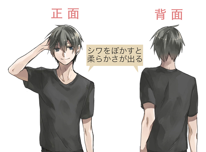 在皱纹浅的情况下(弱的情况下),或者人物被放置在远处的情况下画出强烈的皱纹,就会失去立体感。