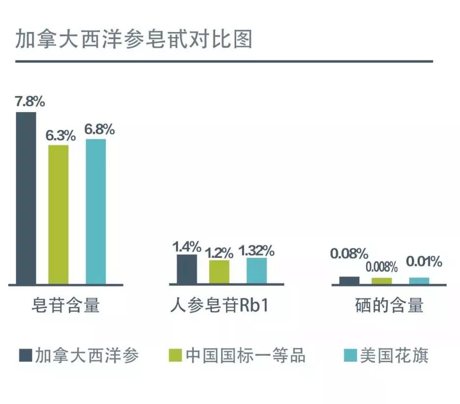 加拿大是西洋参的发源地之一,是目前最大的西洋参生产国,其产量占全球的半壁江山;而其中约85%的加拿大西洋参出产于安大略省。加拿大西洋参富含皂甙、氨基酸、多糖、微量元素等多种营养成分,其皂苷含量达7.8%以上,比国标一等品高出1.5%、比美国花旗参高出1%,人参皂苷Rb1达1.4%、比国标一等品高出0.2%,硒的含量为0.08%、是美国花旗参硒含量的8倍。