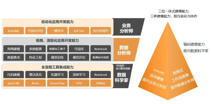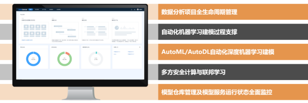 实现自动建模训练可视化、自动特征衍生、自动模择、自动超参数优化、自动模型评估和定期优化。自主研发了面向结构化数据的深度学习工具DeepTables和开源自搜索神经网络架构Hypernets,解决企业在结构化数据上建模的痛点,并在全球率先突破Auto ML快速开发痛点。