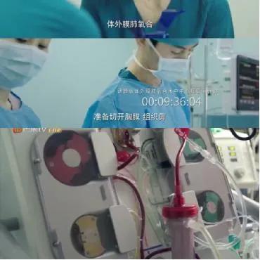 医生们决定马上急诊手术,邓大神挑战10 分钟内完成安置ECMO装置,然后再搞个自体血液回输装置。看看后面的实景,好家伙!剧组这是斥巨资啊。