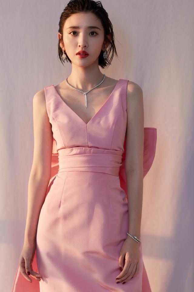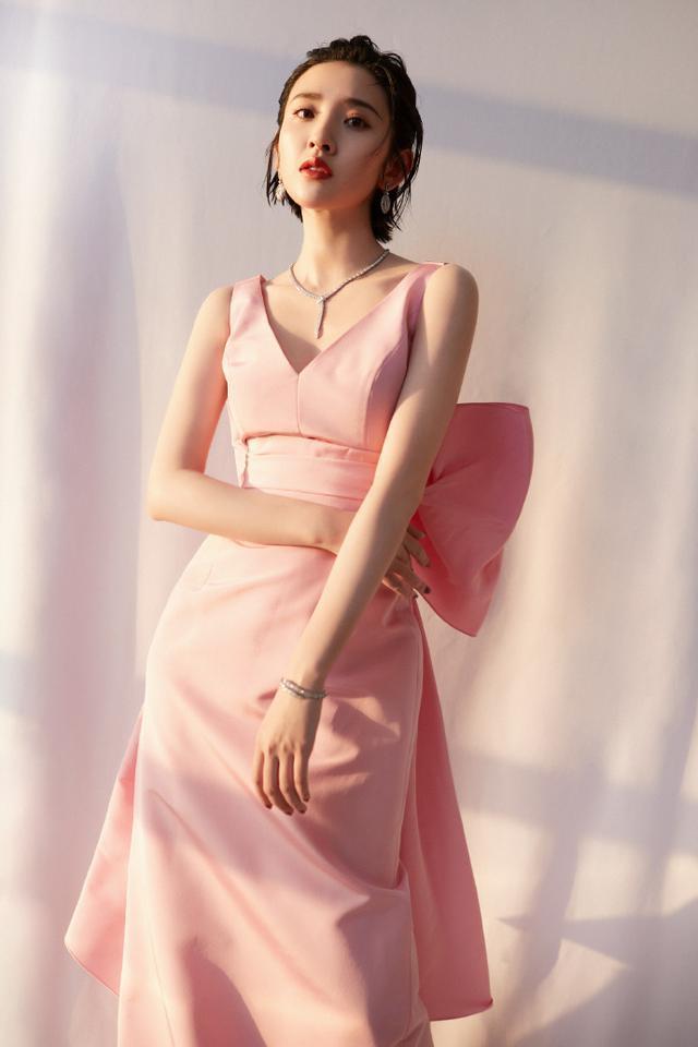唐艺昕大胆选择粉色裙子,于是就更能让人眼前一亮。另外,这件裙子上的粉色并不是俗气的亮粉色,而是与肤色比较接近,视觉效果也更舒适的浅粉色。因此才能在显嫩的同时,还没有亮色系太乍眼的问题。