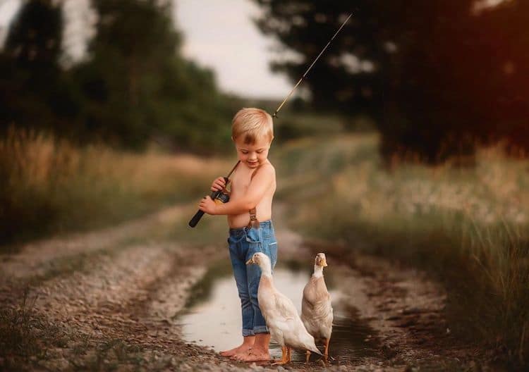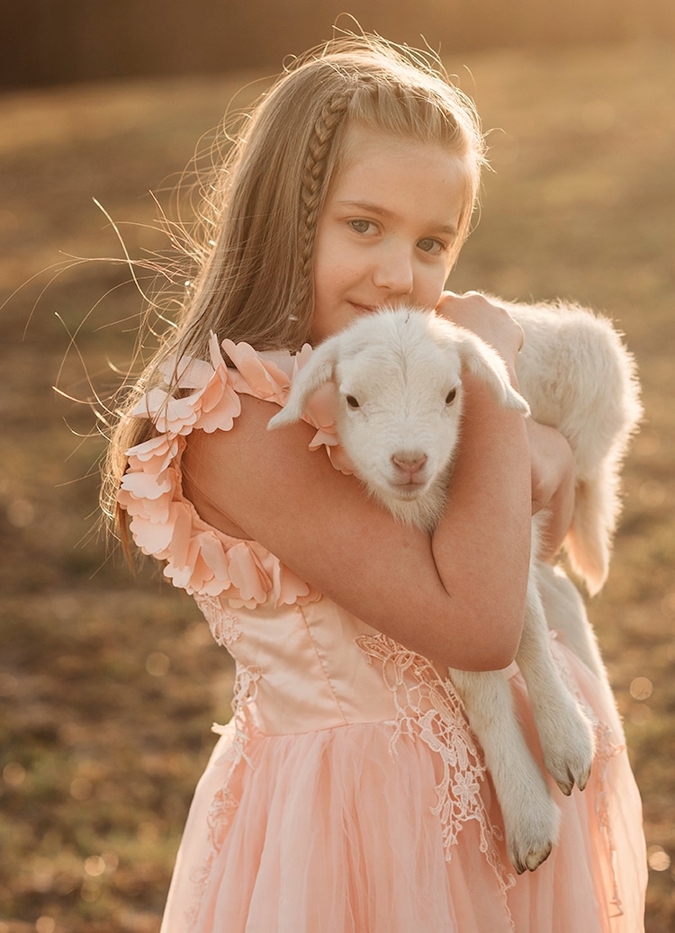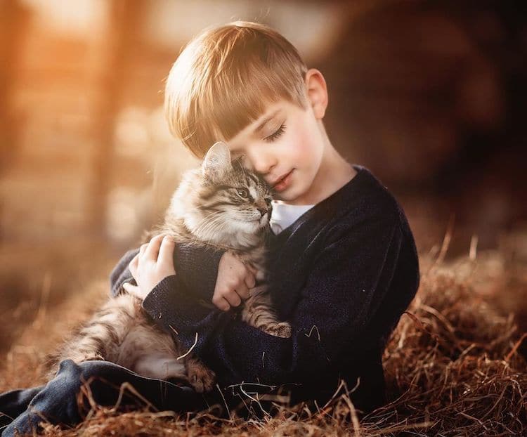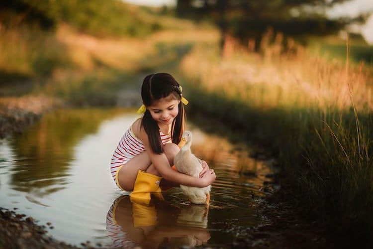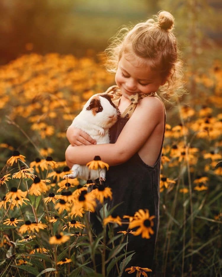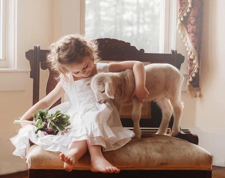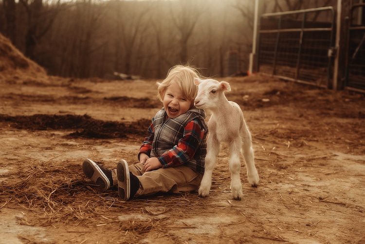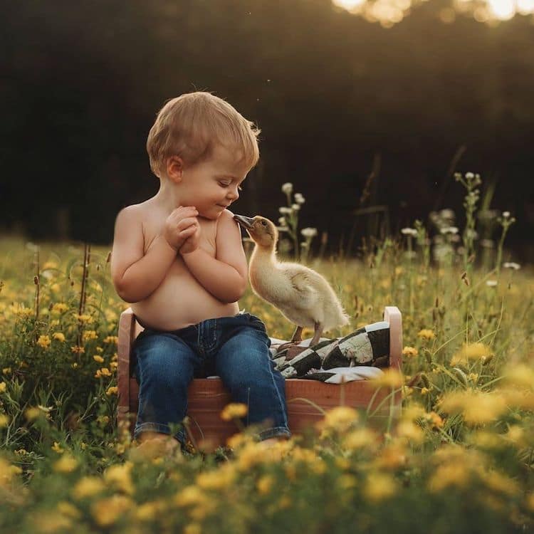摄影师安德里亚·马丁在她拍摄的孩子和动物宝宝的照片中赞美了这些组合带来的快乐。每个可爱的场景都是一个小孩和一个相似大小的生物在乡村环境中拥抱在一起,这些美丽的宝宝照不仅展示了他们之间的纽带,也展示了田园般的环境。
