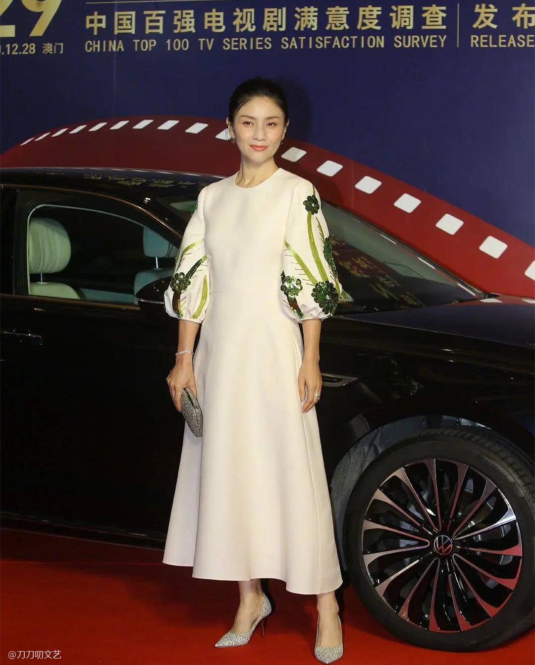 这场红毯,还有身穿一袭裸色镶钻纱裙的港风大美人温碧霞,妆容有点厚重,好像戴了一个面具,另外好想给她把头发扎起来。