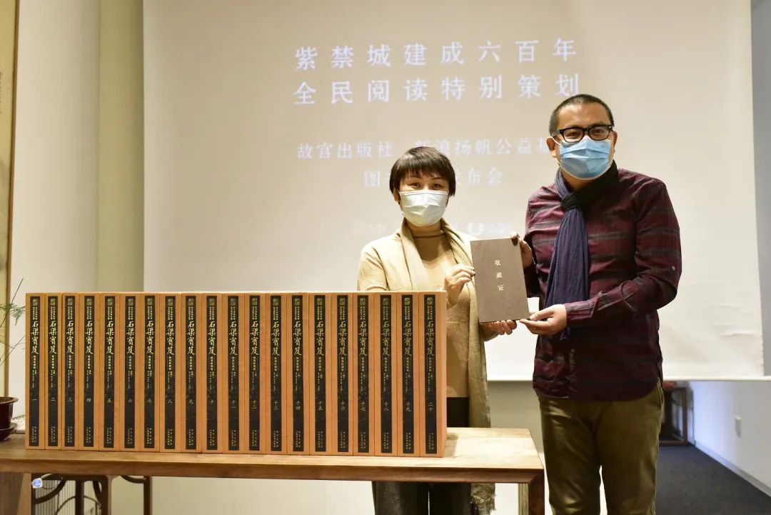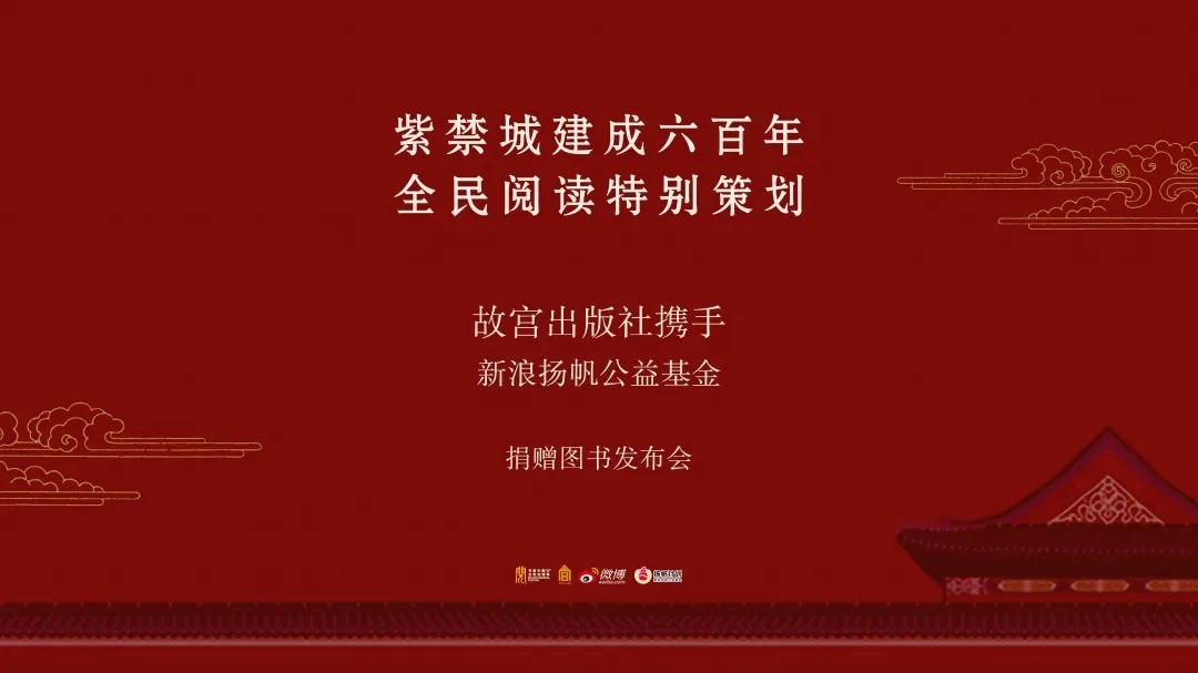 2020年12月28日,由故宫出版社主办的“故宫出版社携手新浪扬帆公益基金图书捐赠发布会”在故宫博物院紫禁书院举行。故宫博物院副院长闫宏斌、故宫出版社总编辑刘辉、新浪微博内容运营总监杜长军、新浪扬帆公益基金理事长阮向荣等领导嘉宾出席,发布会由故宫出版社副社长钱传强主持。