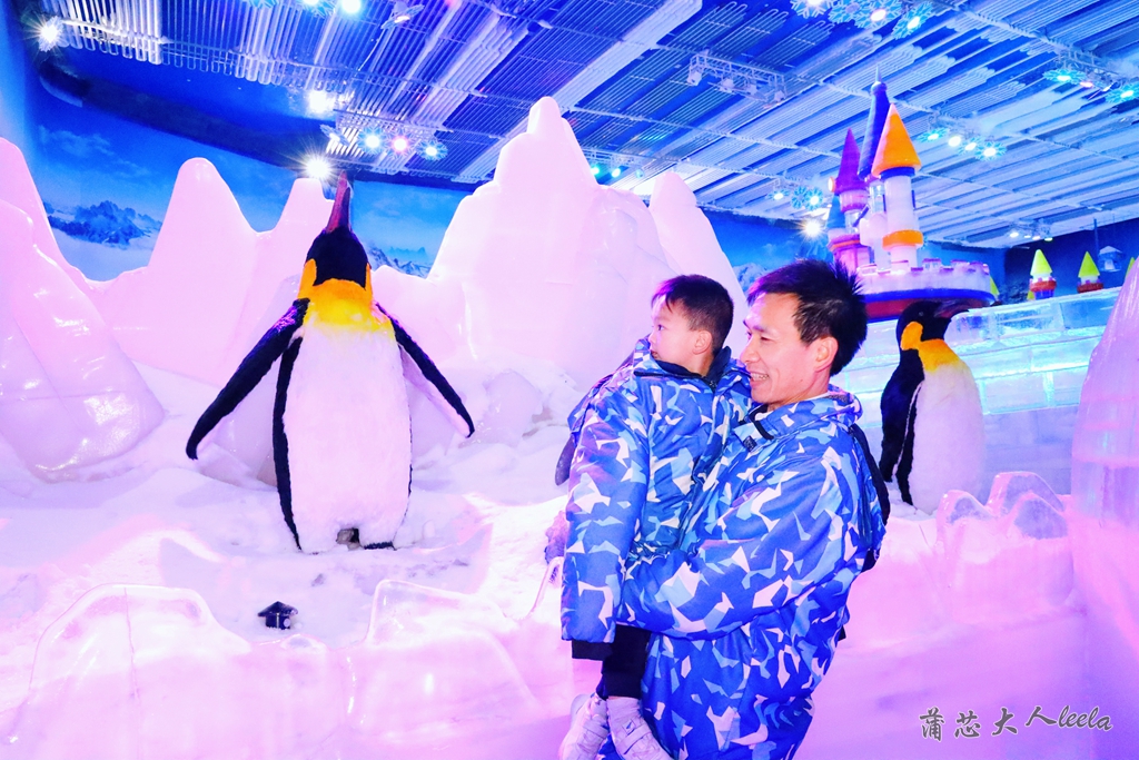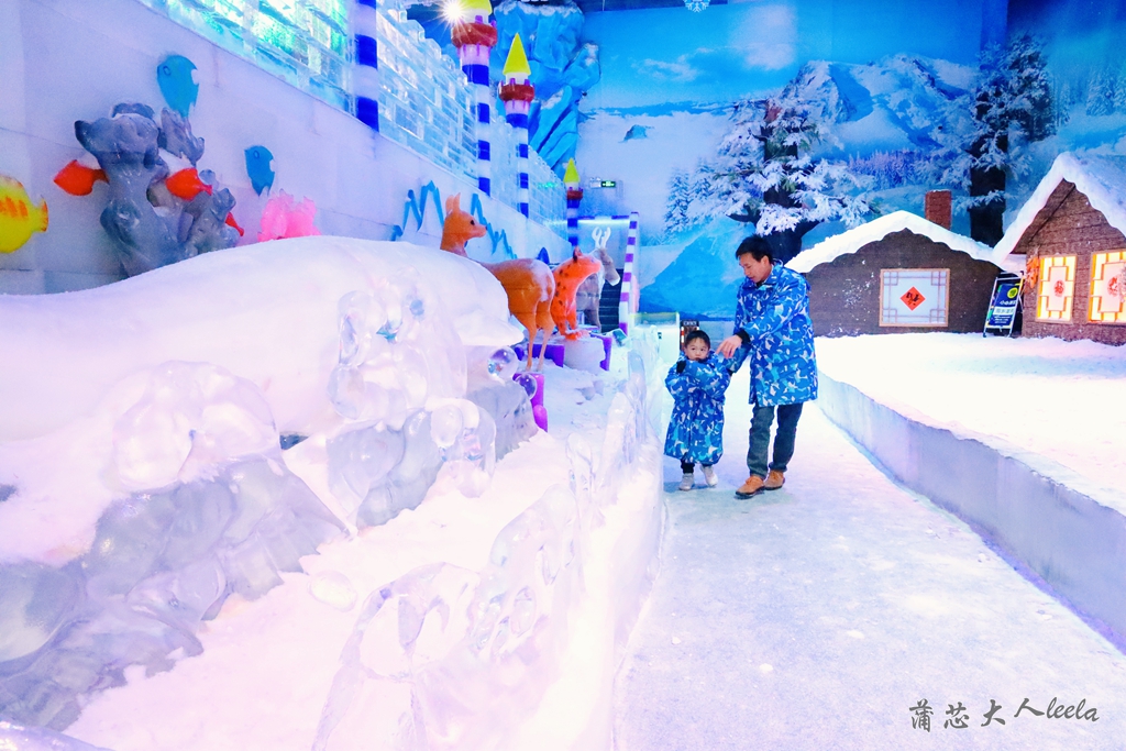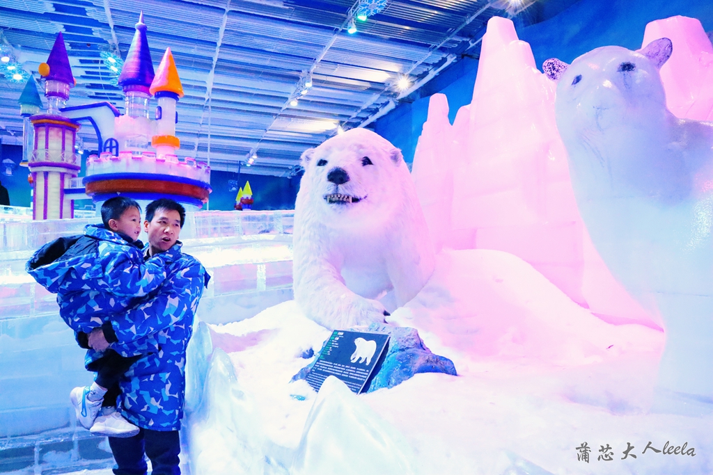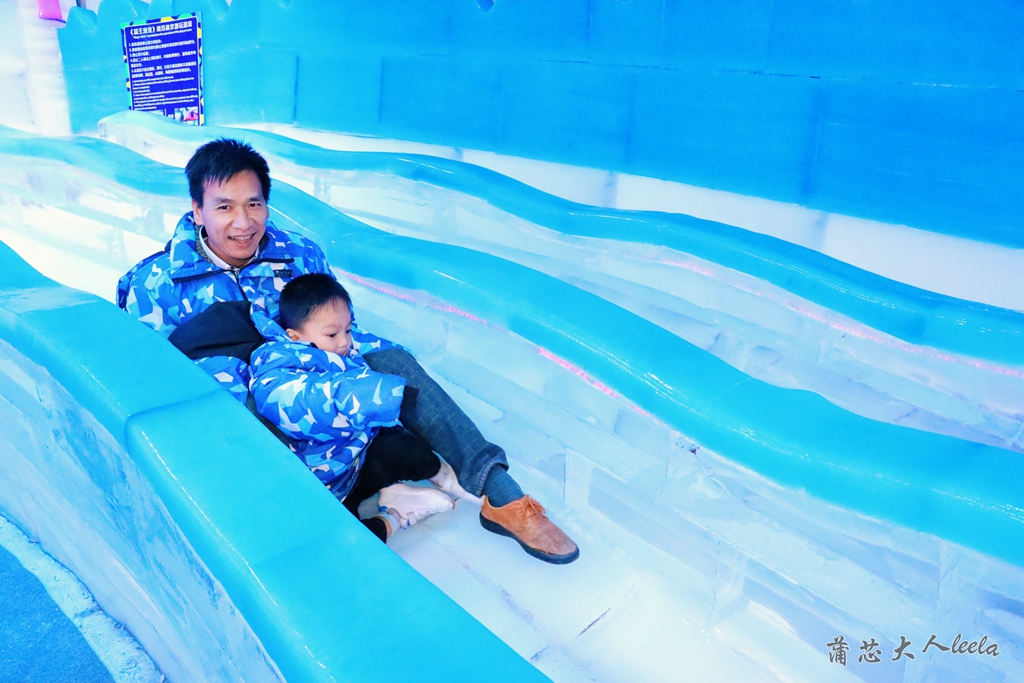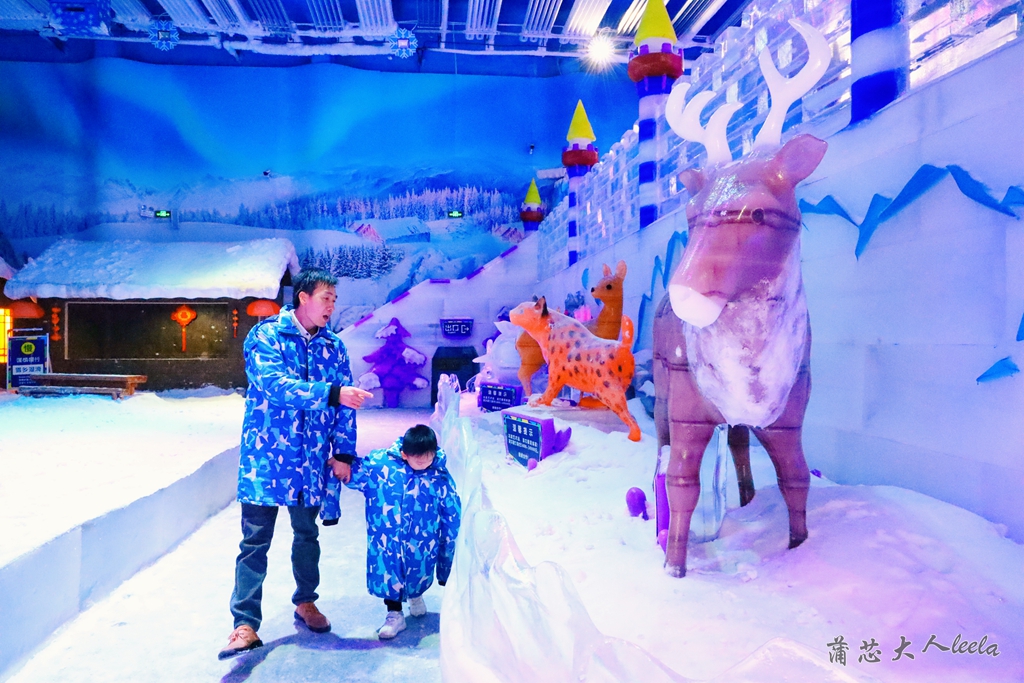 冰雪世界有各种动物冰雕,包括北极熊、企鹅、雪豹和猛犸象等,有宝宝喜欢的冰滑梯,他滑了好几遍还要玩。